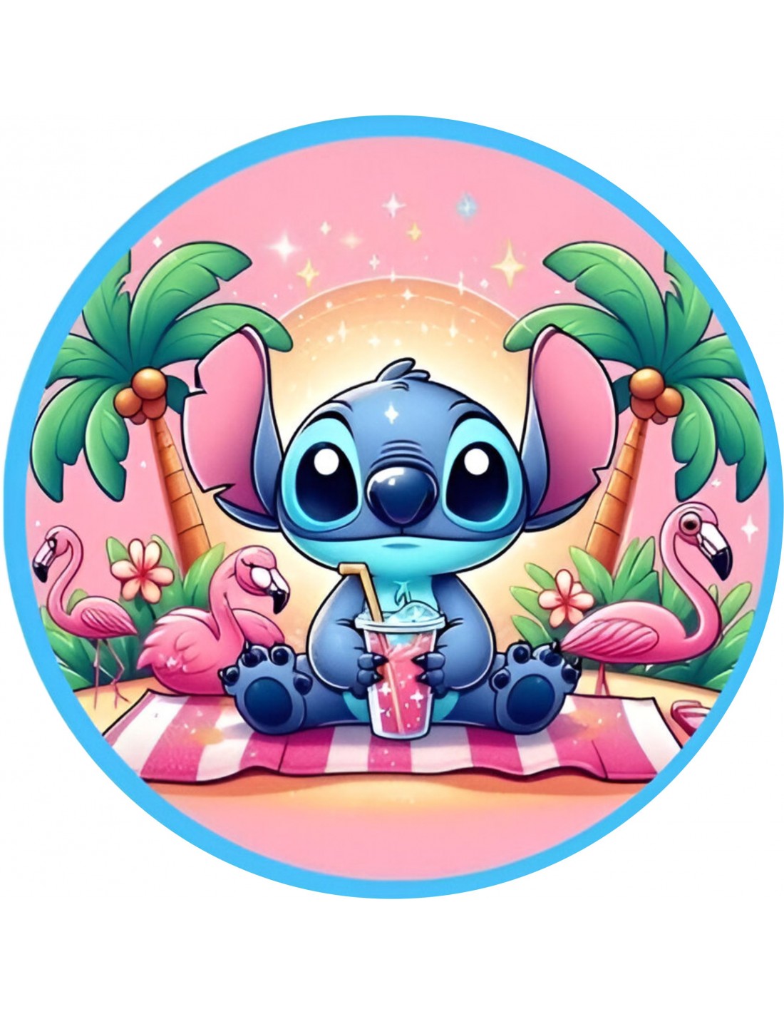 Hoja de papel de azúcar impresa con tinta comestible para decorar tartas de Stitch.