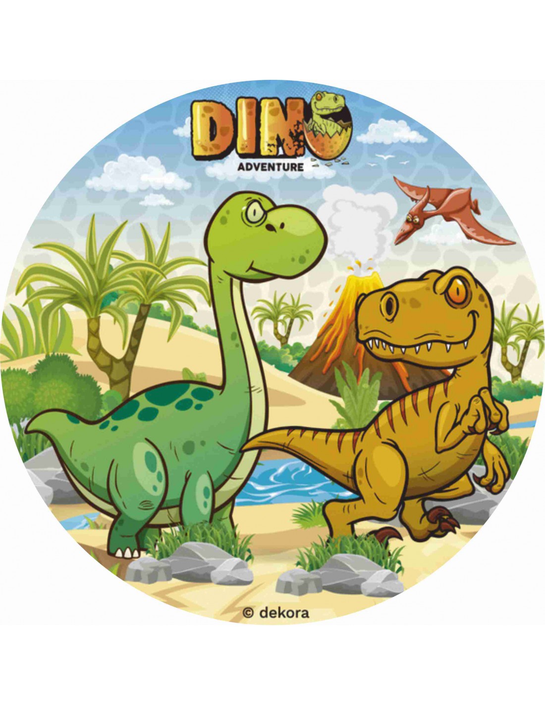 Hoja de papel de azúcar impresas con tinta comestible con dinosaurios, para personalizar tartas.