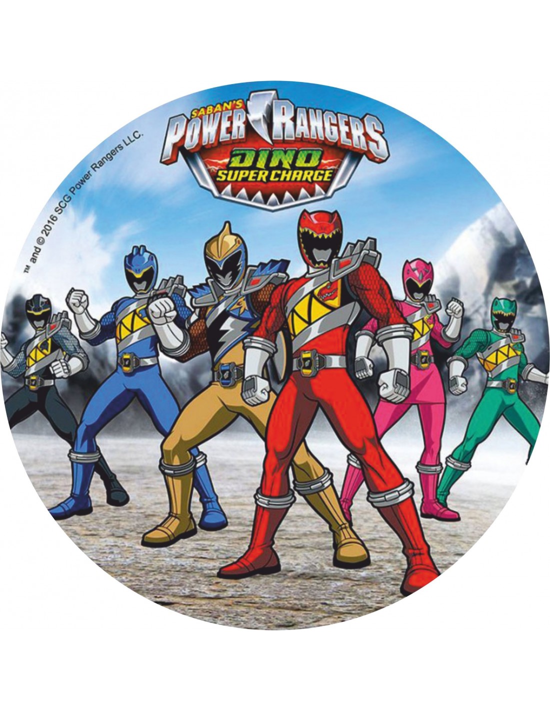 Hoja de papel de azúcar para personalizar tartas impresa con tinta comestible con imágenes de los Power Rangers.