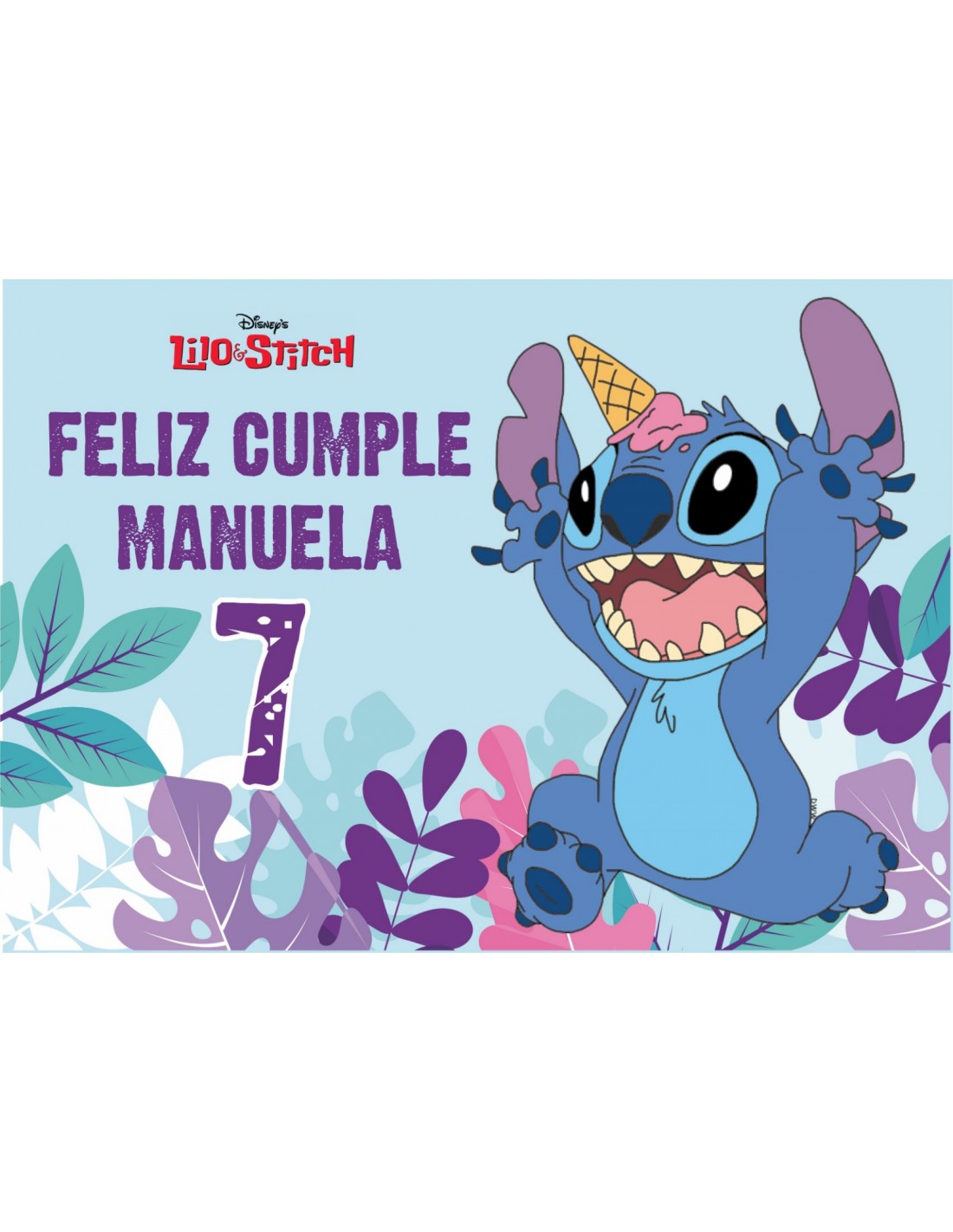 Hoja de papel de azúcar impresa con tinta comestible para decorar tartas de Stitch.