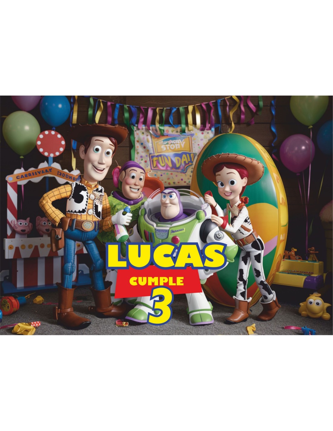 Hoja de papel de azúcar impresa con tinta comestible para decorar tartas, personalizada con nombre y edad, con imagen de la película infantil Toy Story.