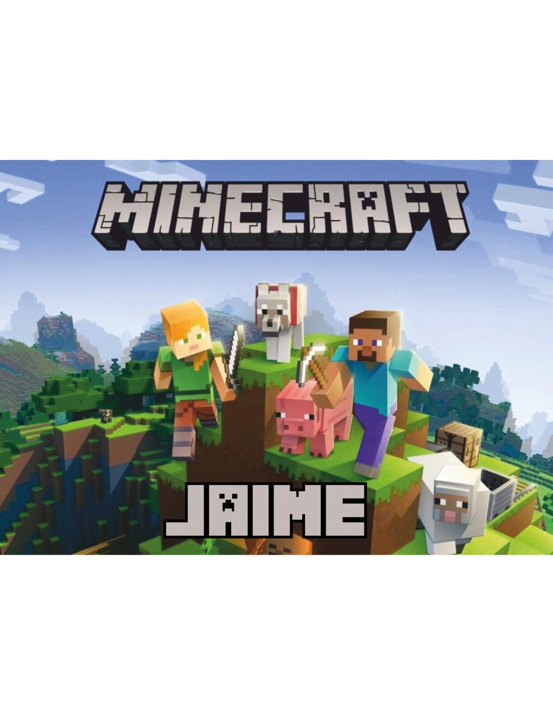 Lámina de papel de azúcar impresa con tinta comestible para personalizar tartas, con imágenes de Minecraft personalizada con el nombre.