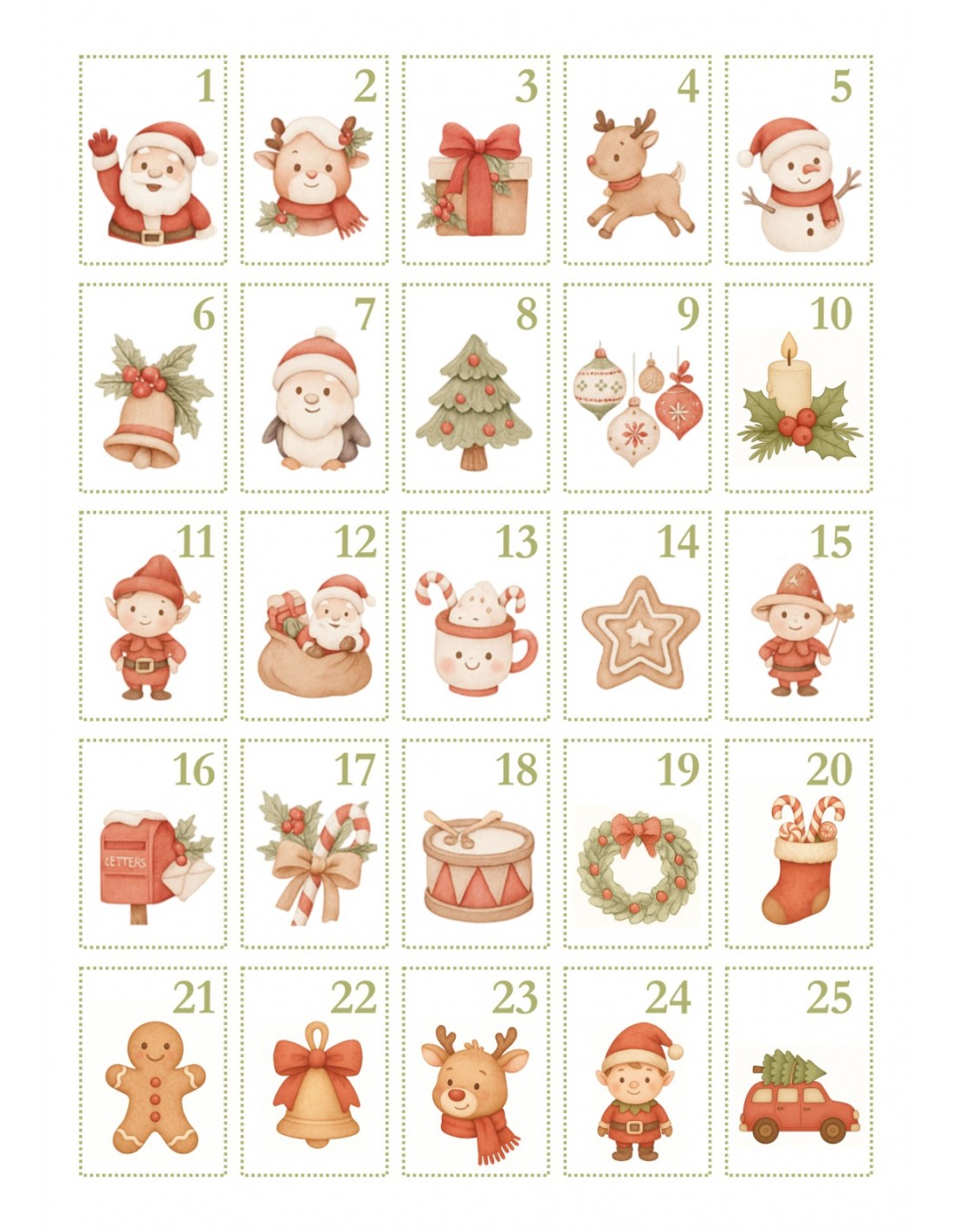 Con este bonito papel de azúcar podrás decorar veinticinco galletas de lo más originales esta Navidad, formando un dulce calendario de adviento, una galleta por cada día de espera a Papá Noel.