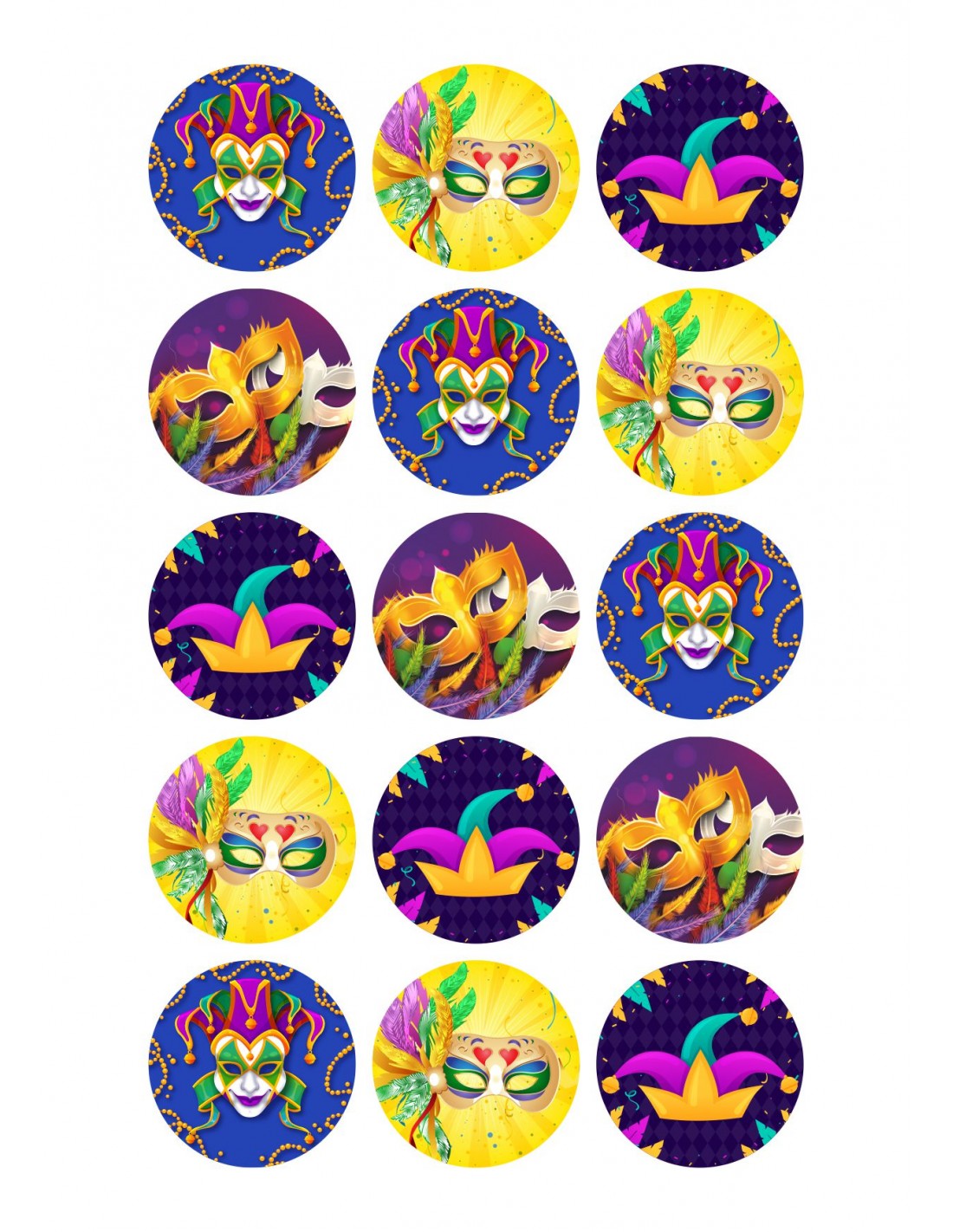 Hoja de papel de azúcar carnaval impreso con tinta comestible para decorar tartas, cupcakes y galletas. Dale un toque original a tus galletas o cupcakes.