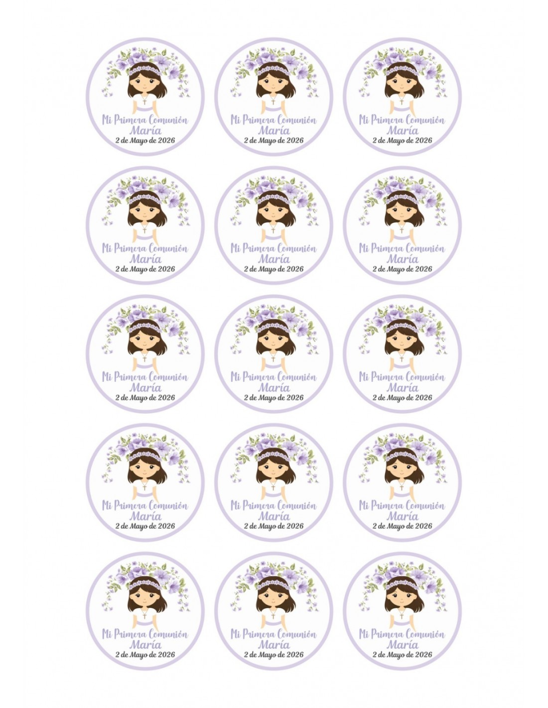Papel Comestible Niña de Comunión Floral Lila Personalizado para Galletas