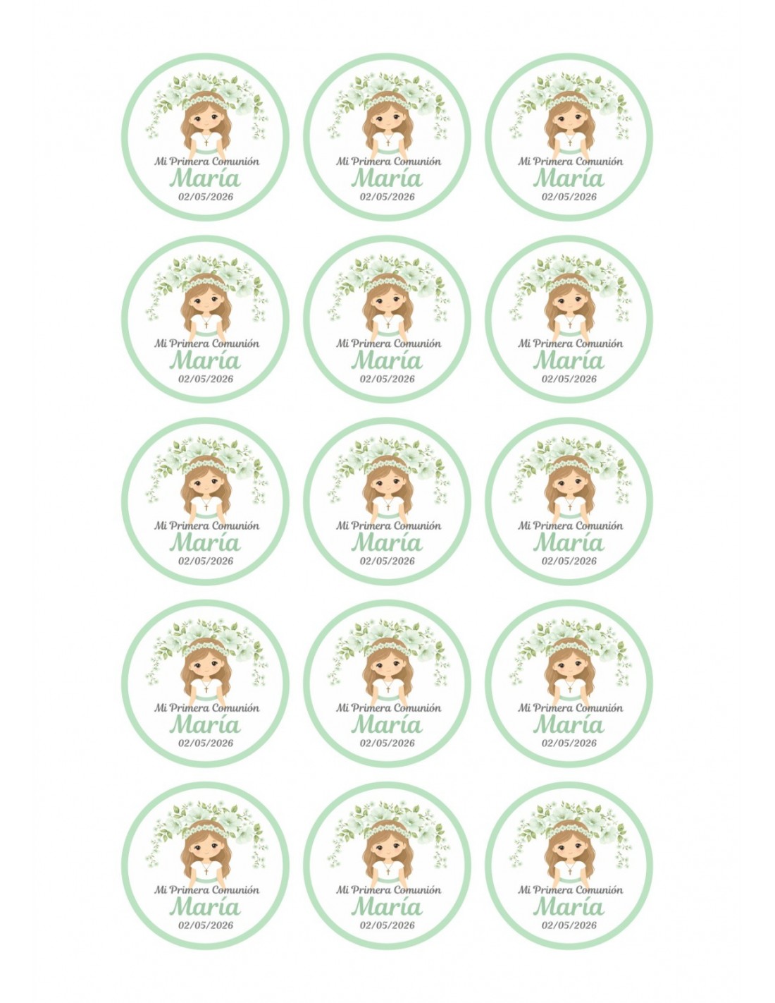Papel Comestible Niña de Comunión Floral Verde Personalizado para Galletas