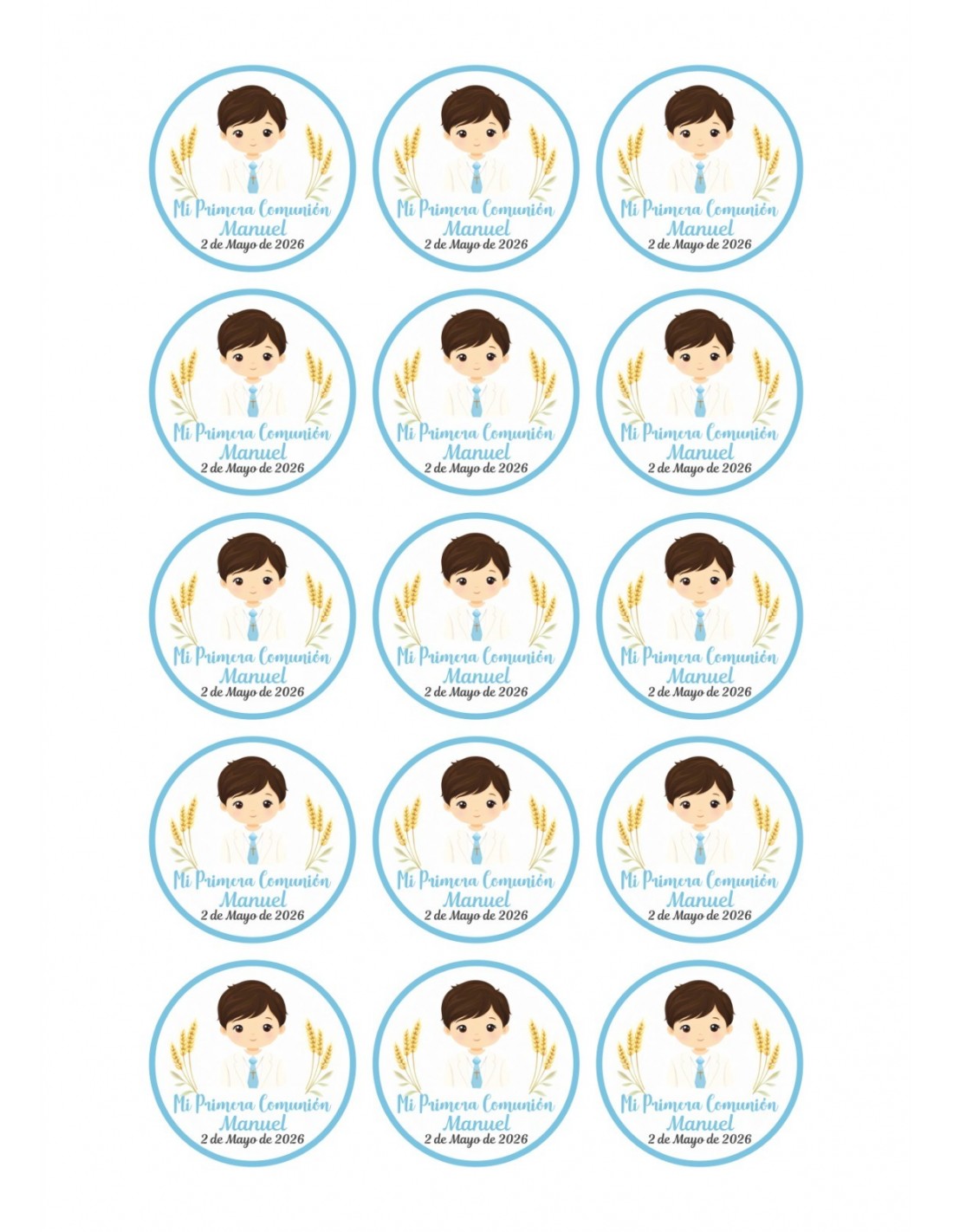 Papel Comestible Niño de Comunión Trigo Personalizado para Galletas