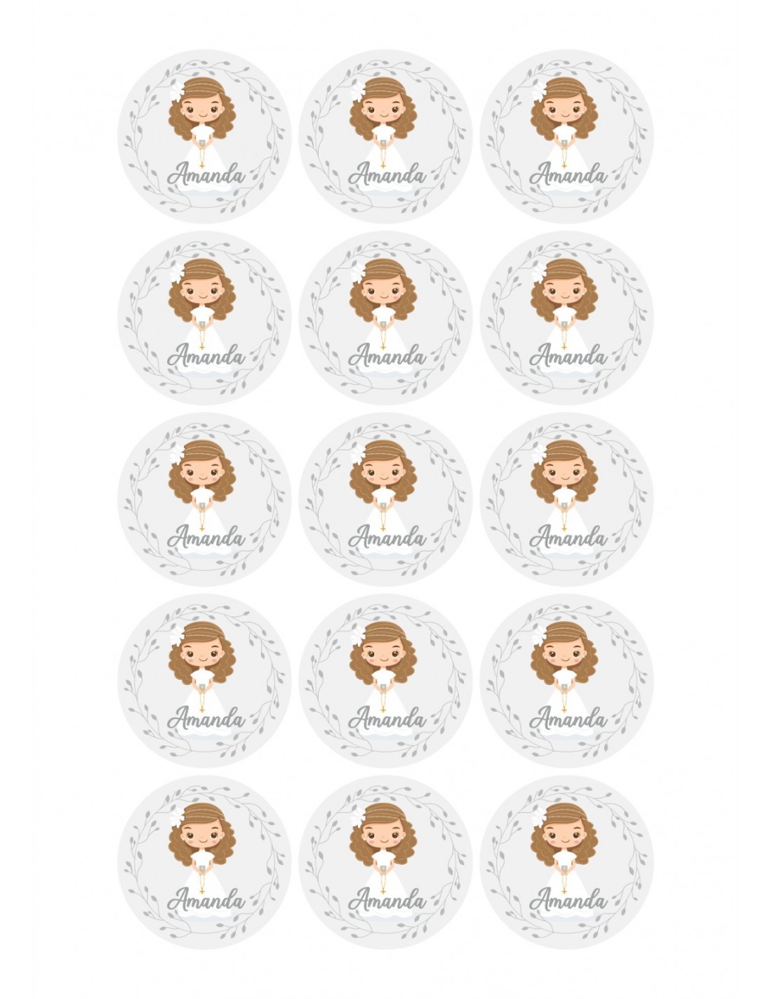 Papel de azúcar niña de comunión pelo rizado para galletas