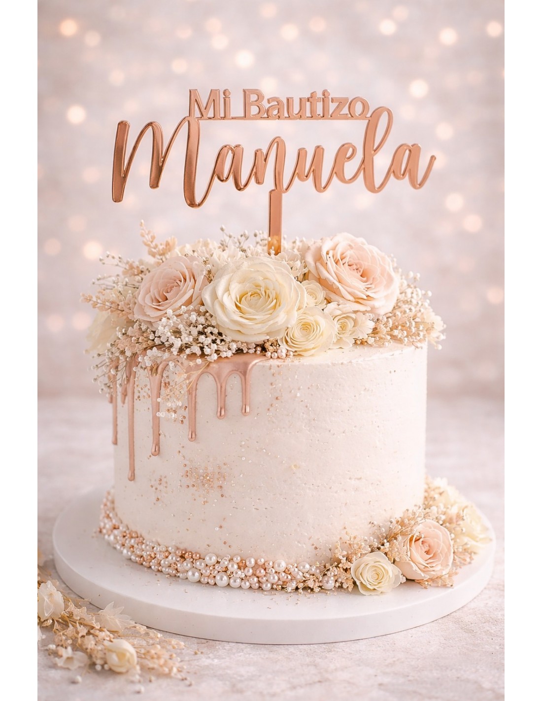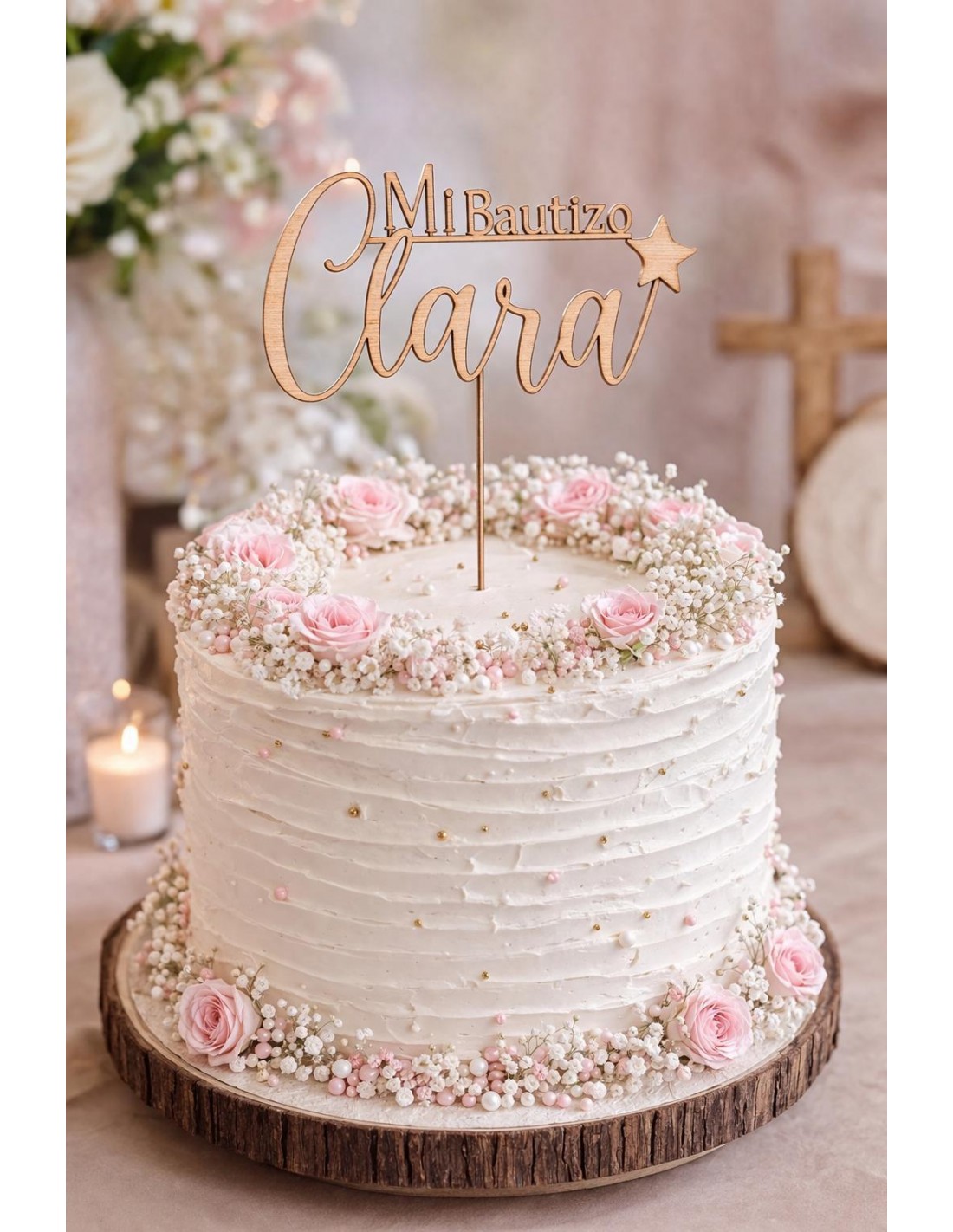 Dale un toque original a tu tarta con este Topper Mi Bautizo con nombre.