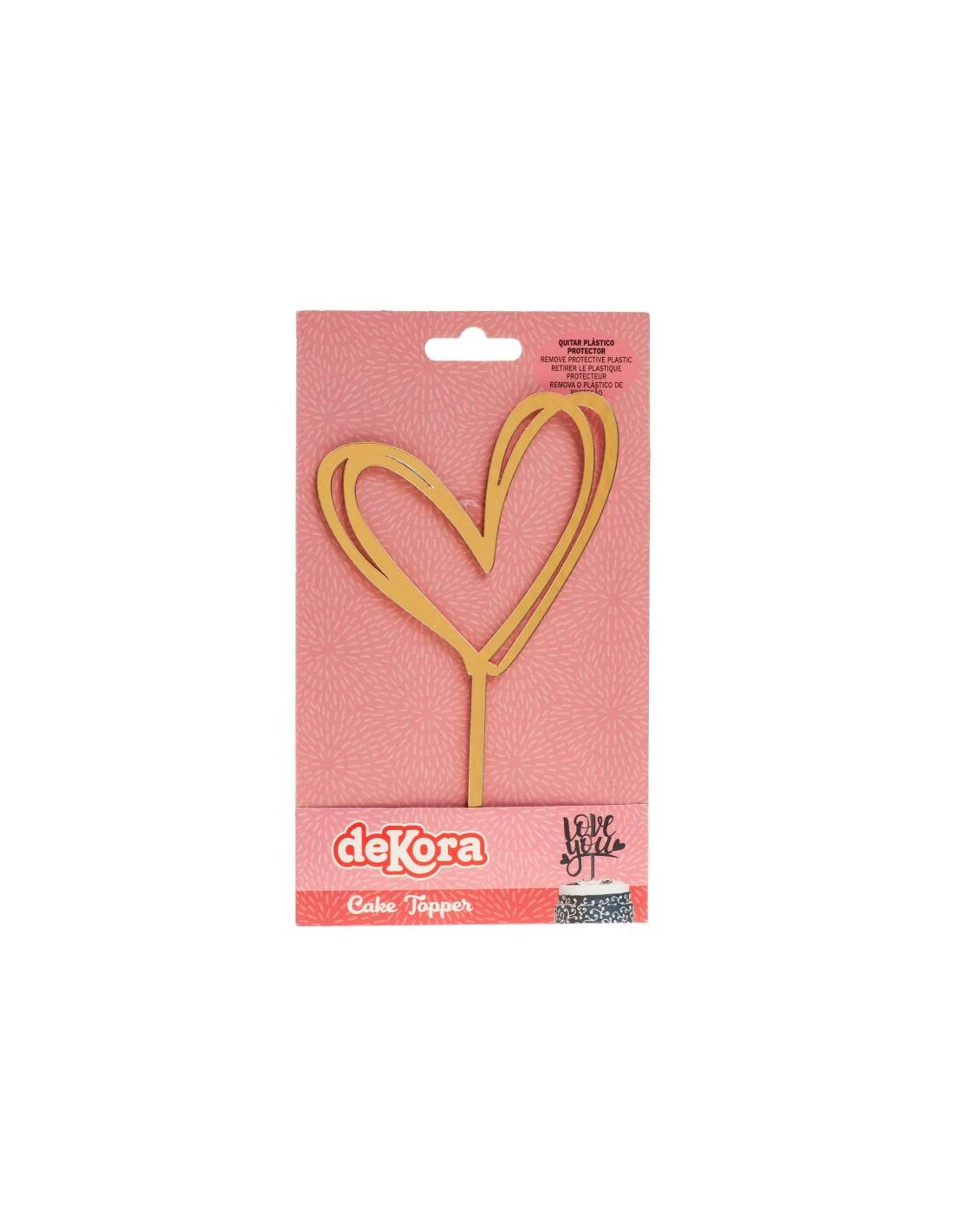 Topper para tartas con la silueta de corazón dorados. Un detalle elegante y único para tu tarta.