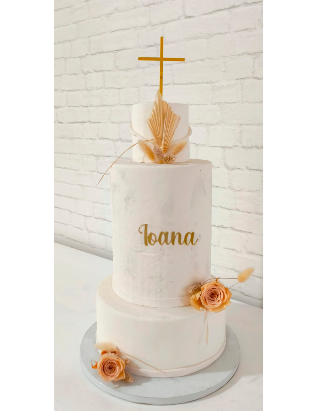 Cualquier tarta quedará realzada con el topper Cruz más el nombre para colocar en el frontal, realizados en un material de alta calidad.