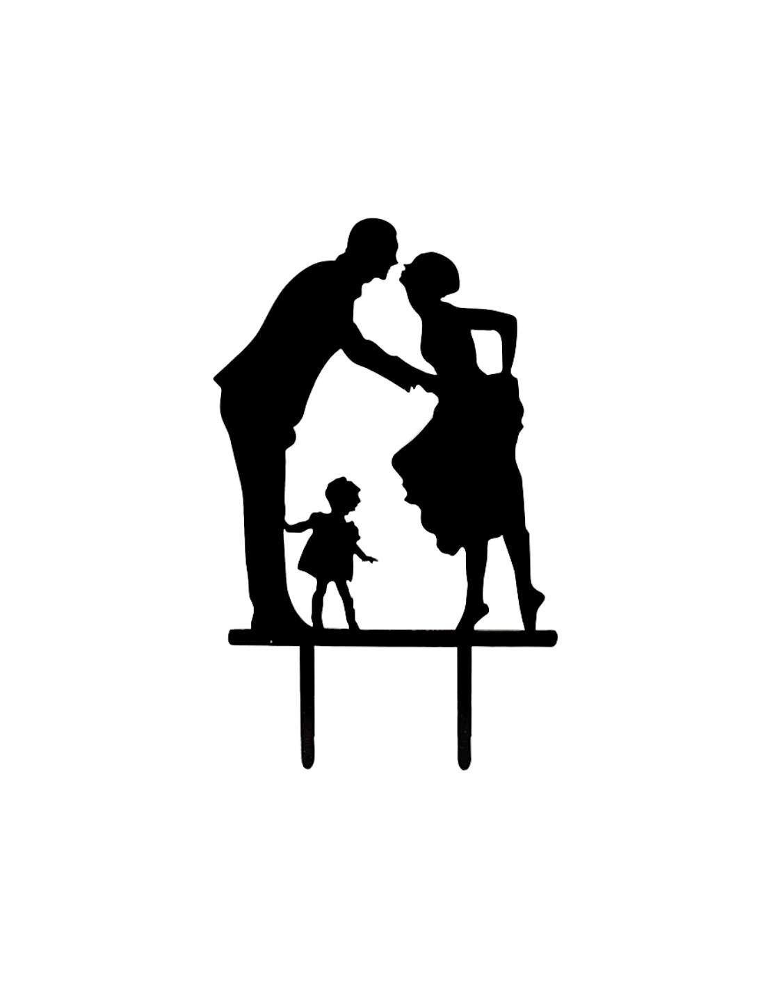 Topper para tartas con la silueta de Familia en color negro. Un detalle elegante y único para tu tarta.