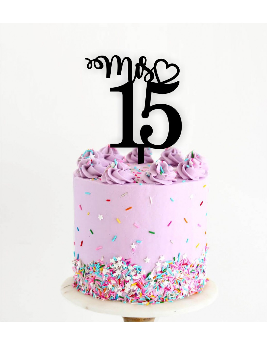 Un topper precioso para celebrar tu fiesta de los 15 Años. Con este topper con el texto "Mis 15" tu tarta quedará mucho más bonita y destacada.