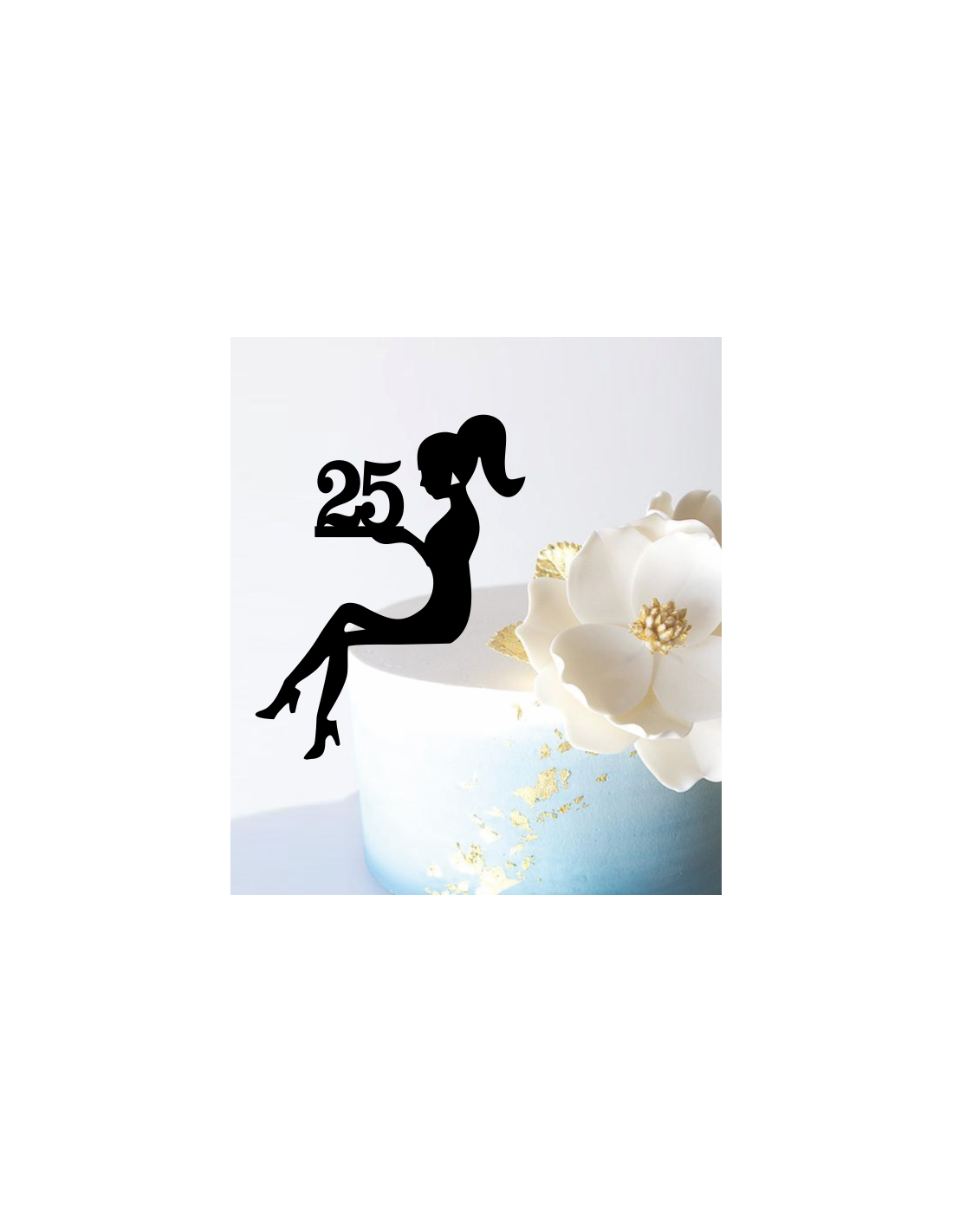Topper para tarta con la silueta chica, fabricado en metacrilato de 3 milímetros de grosor o madera. Elige el color que más te guste entre los disponibles.