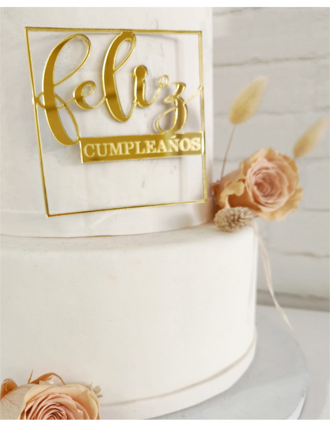 A veces, el detalle más discreto es el que roba todas las miradas… Este topper frontal con el mensaje “Feliz Cumpleaños” en dorado espejo es uno de esos detalles que transforma una tarta sencilla en una tarta inolvidable. Diseñado con líneas limpias, caligrafía delicada y un formato cuadrado súper estiloso, se convierte en el complemento ideal para tartas minimalistas, románticas o con inspiración floral.