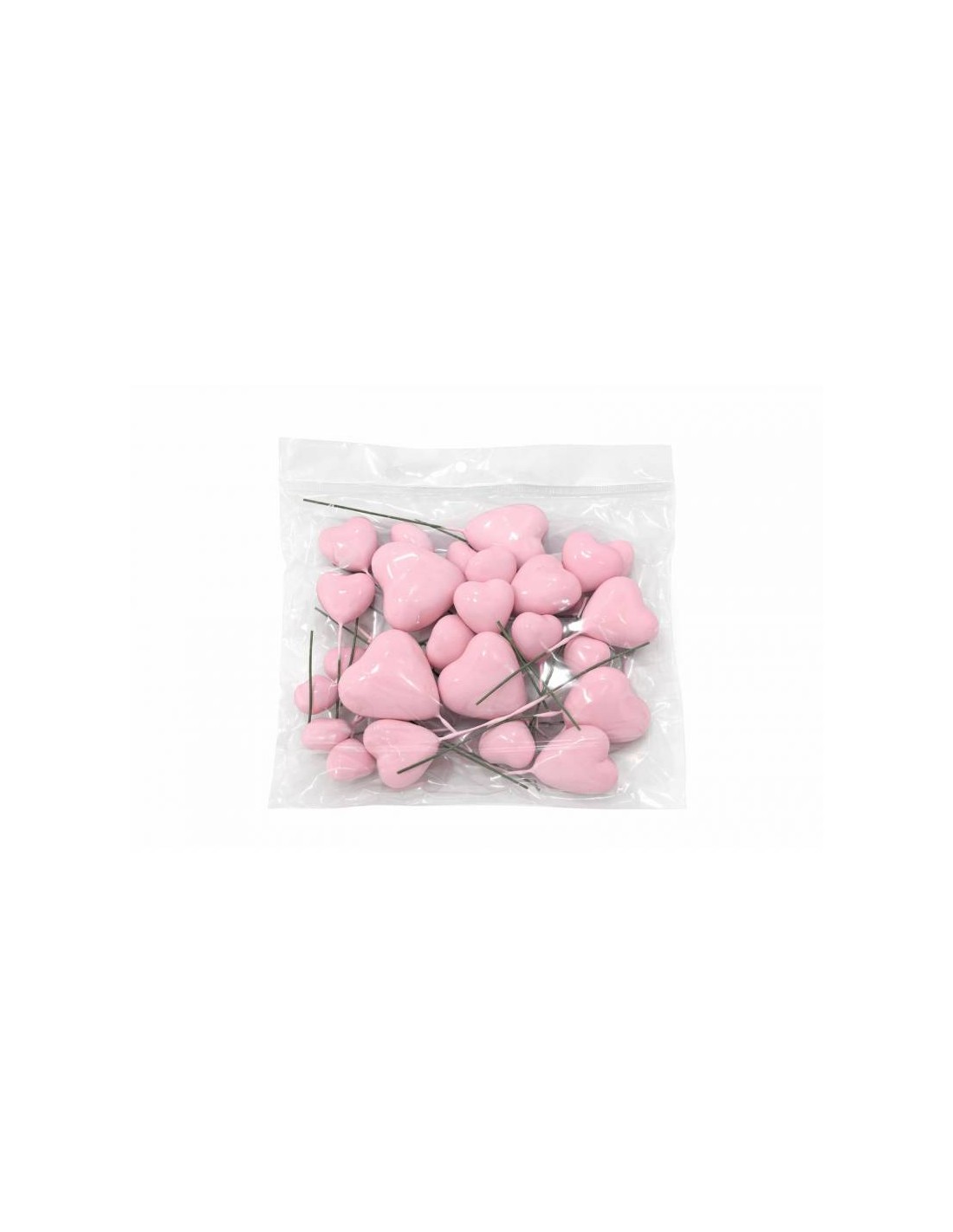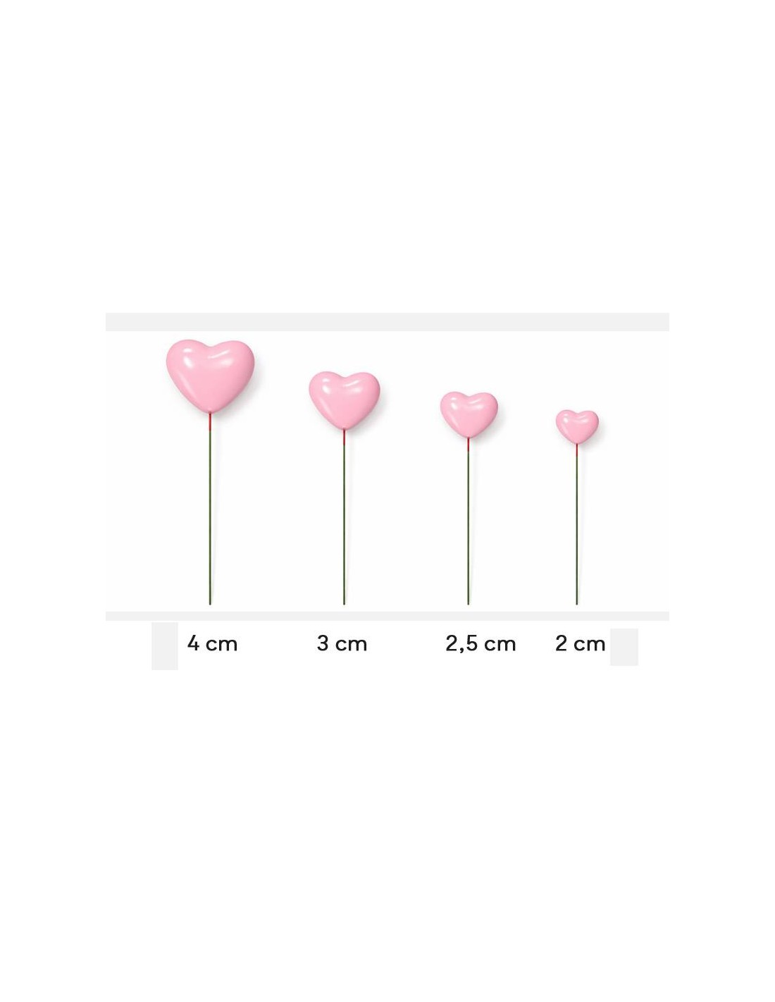 El set contiene: 20 mini toppers con forma de corazones de color rosa (no comestibles) con alambre, de varios tamaños.