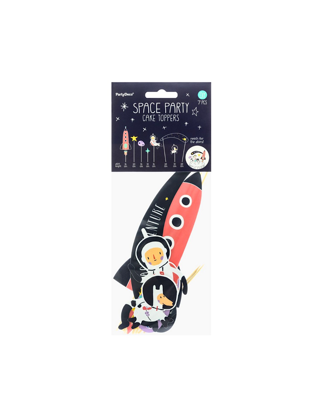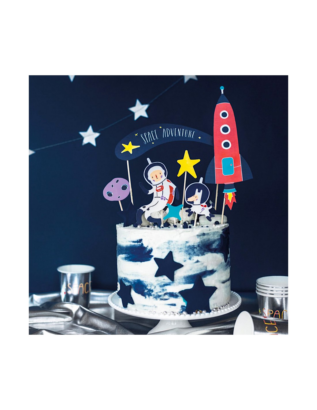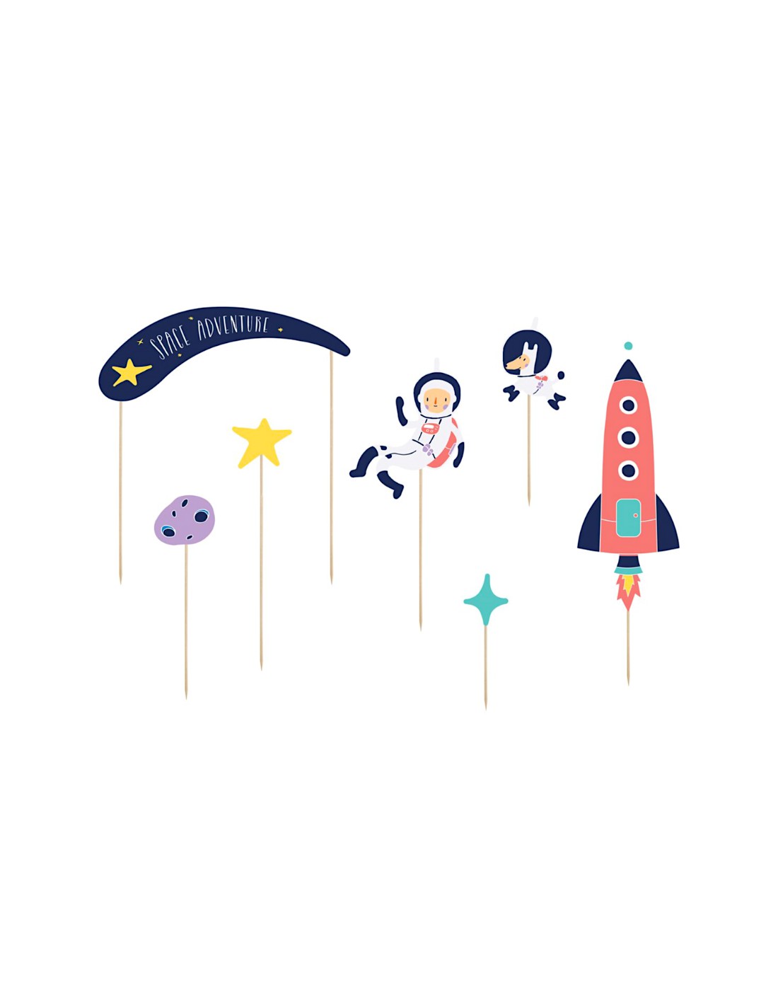 Set de 7 toppers de cartulina con motivos de Aventura Espacial ideales para decorar tartas.