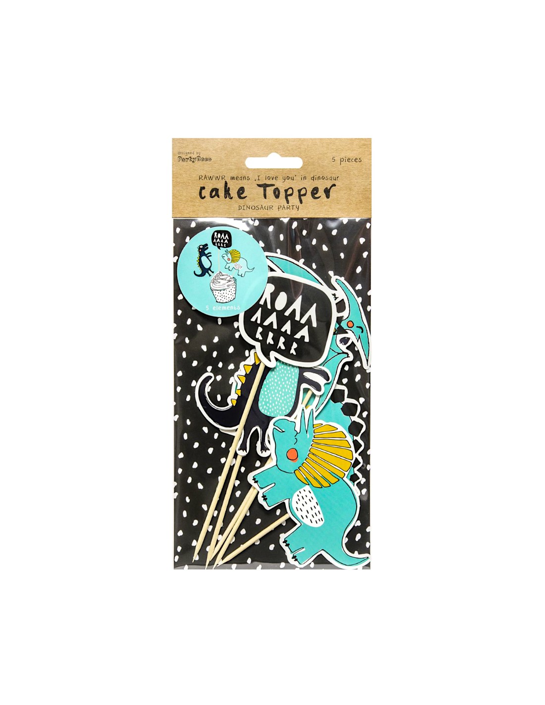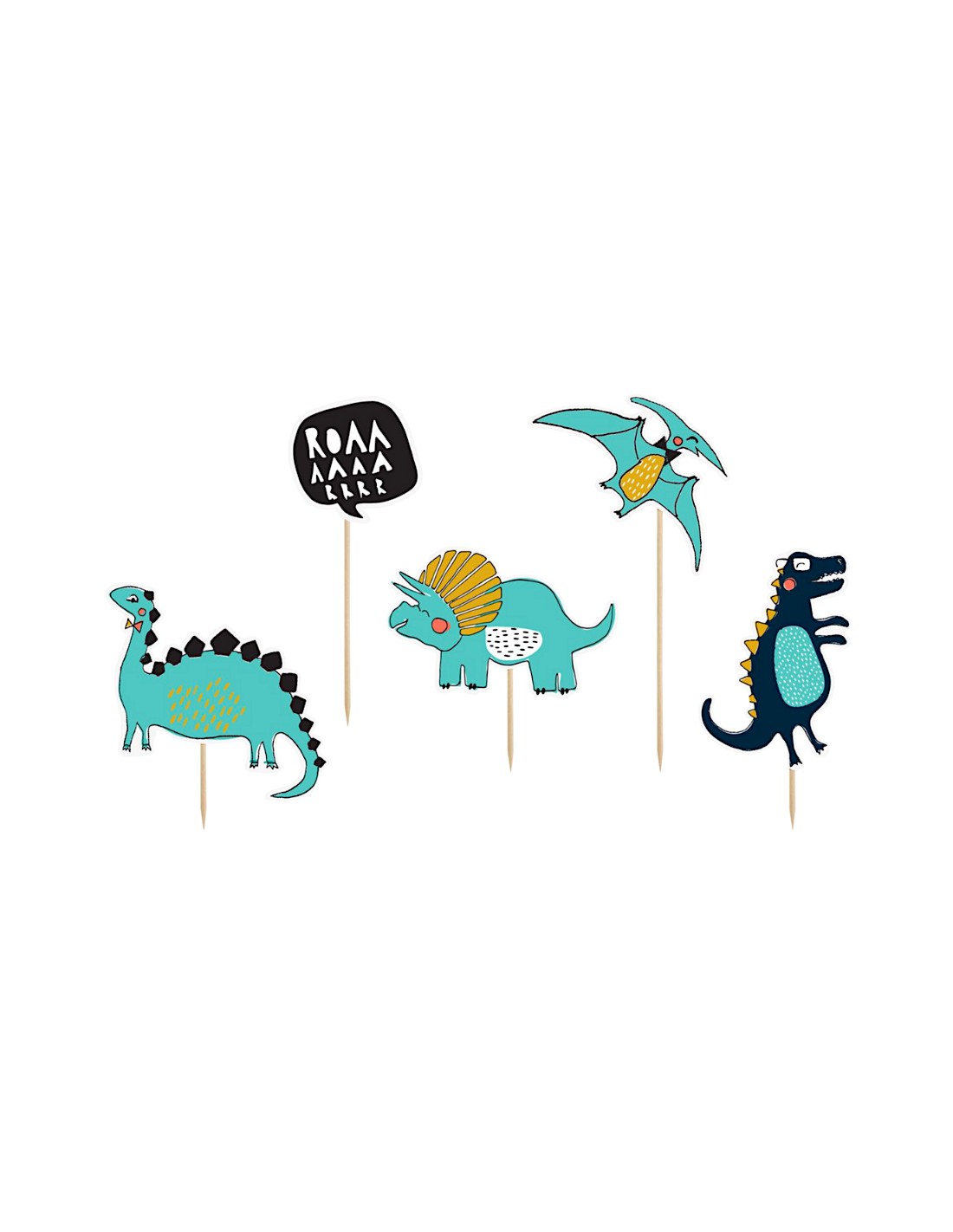 Set de 5 toppers de cartulina con motivos de Dinosaurios ideales para decorar tartas.