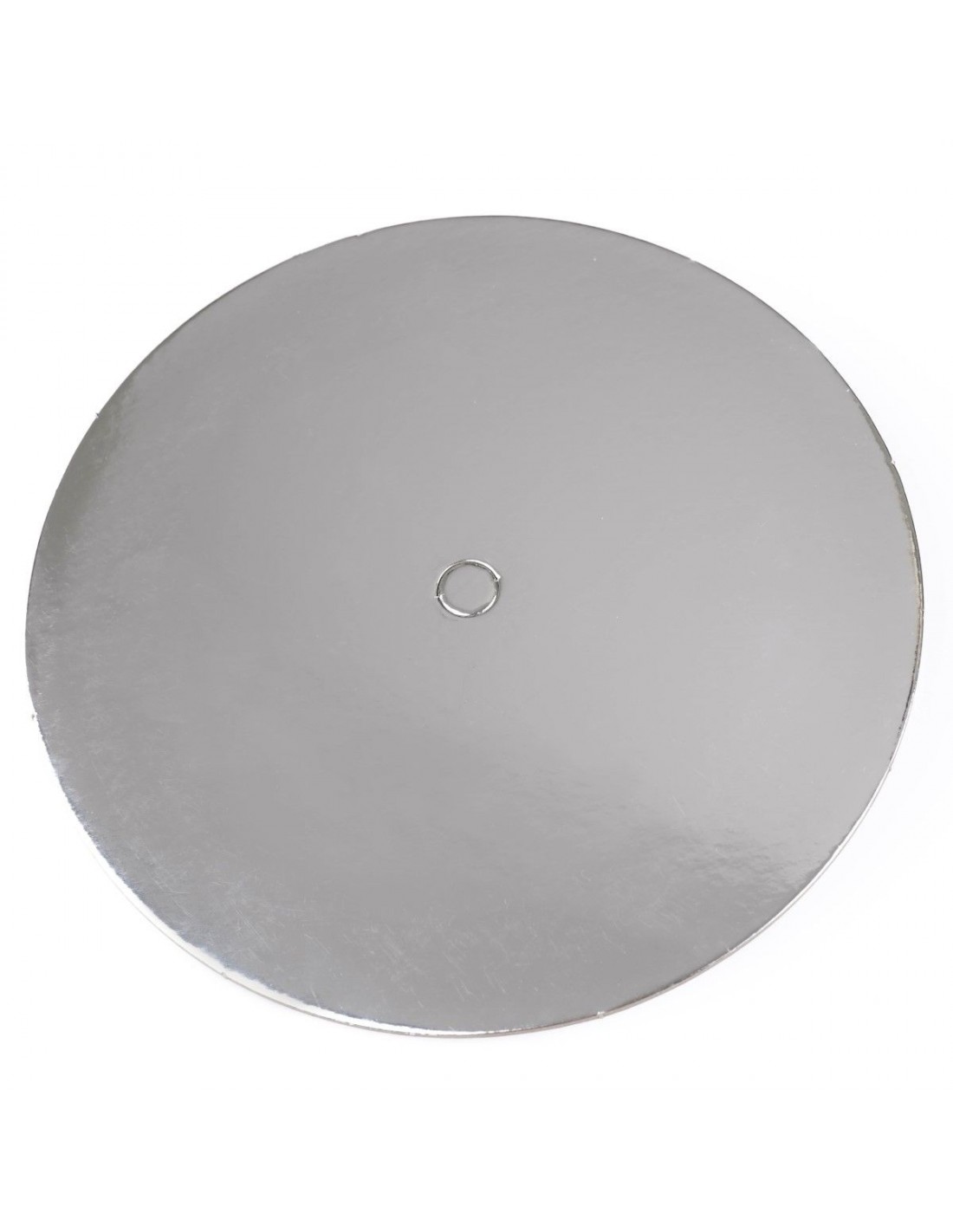 Base de cartón redonda ideal para tartas de varios pisos, ya que gracias a su centro perforado permite pasar un pilar central para unir los diferentes pisos de la tarta como sujeción.