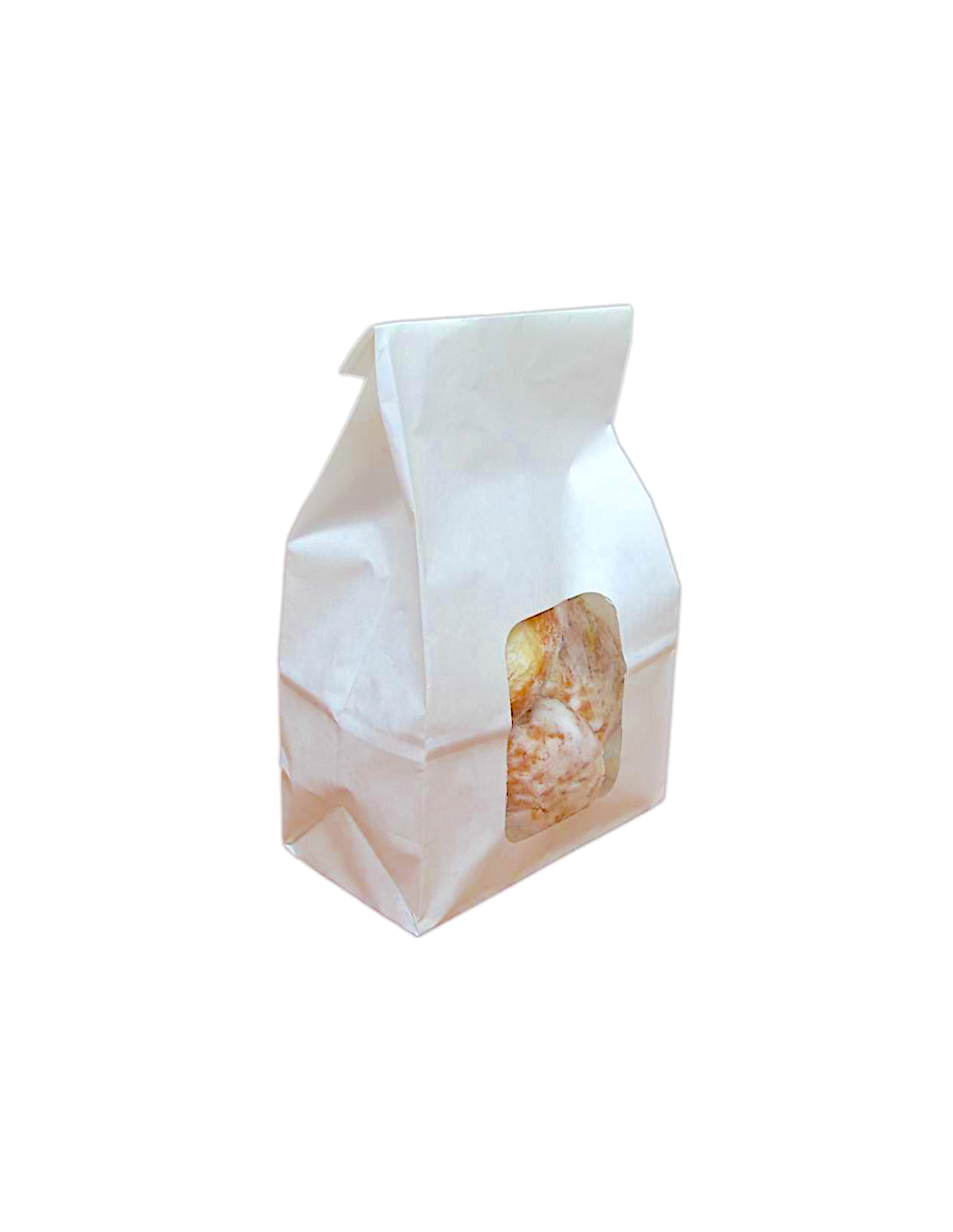 Estas bolsas blancas de papel con ventana son ideales para galletas, donuts, bombones...