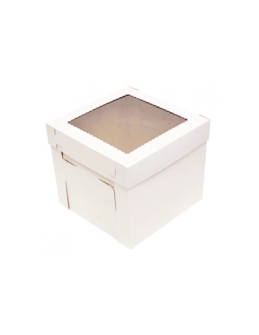 Caja de cartón para tarta blanca con ventana.