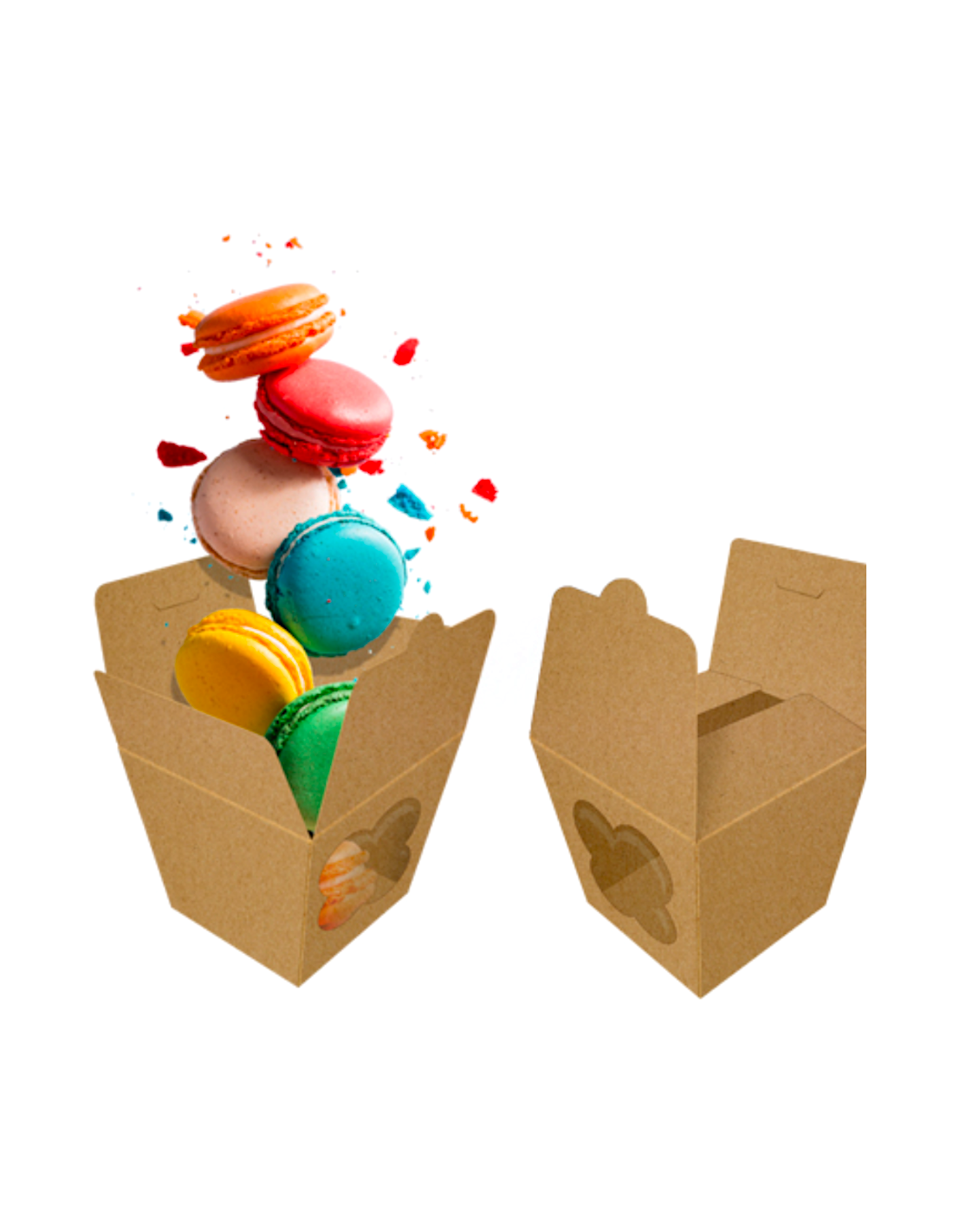 Caja para bombones Kraft con ventana. Ideal para guardar o transportar tus bombones, macarons, gominolas...