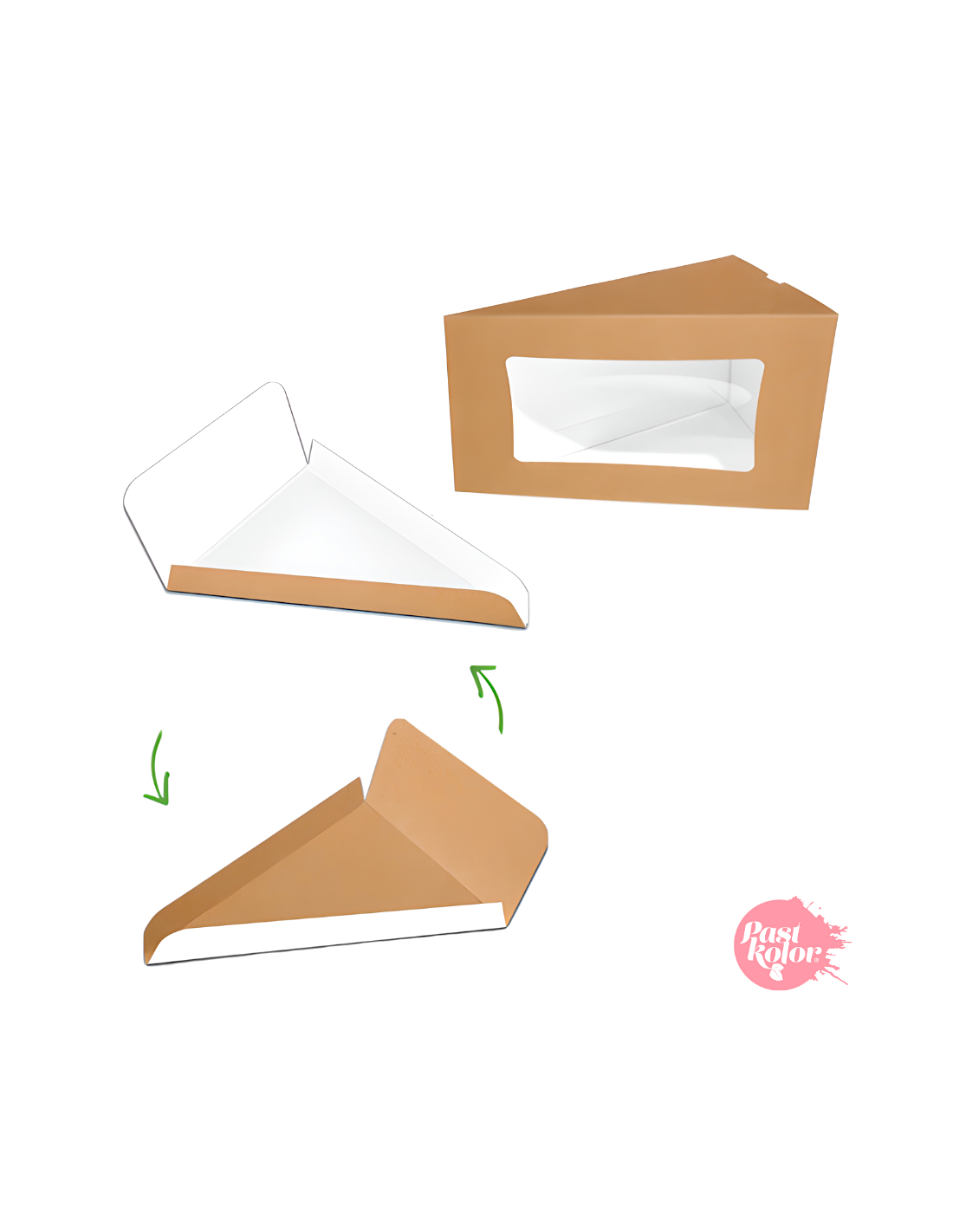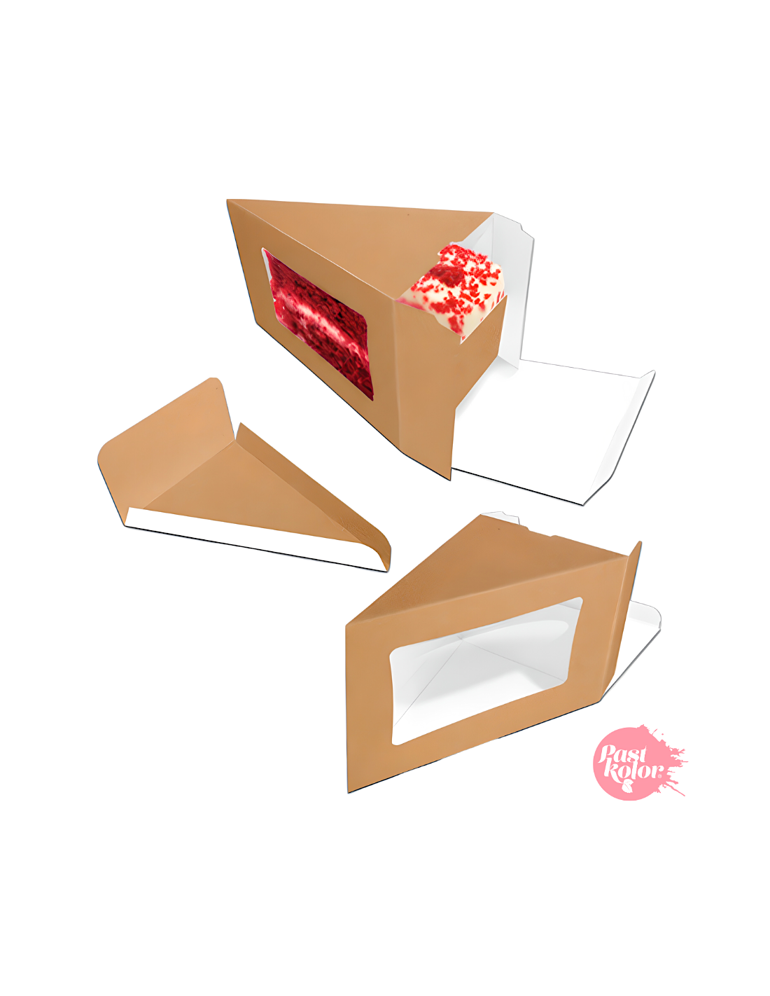 Incluye 1 caja de cartón con ventana + 1 bandeja para porción de tarta reversible (color blanco o kraft).