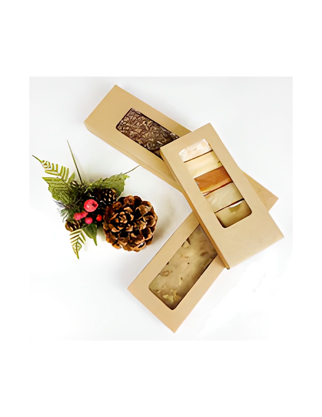 Caja para turrón de color kraft con ventana. Ideal para guardar tus tabletas de turrón estas navidades.
