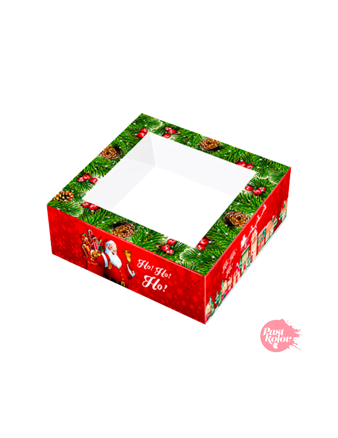 Caja con ventana de Navidad con bonito diseño de Santa Claus es ideal para transportar o regalar tus roscones, dulces o tartas estas navidades.