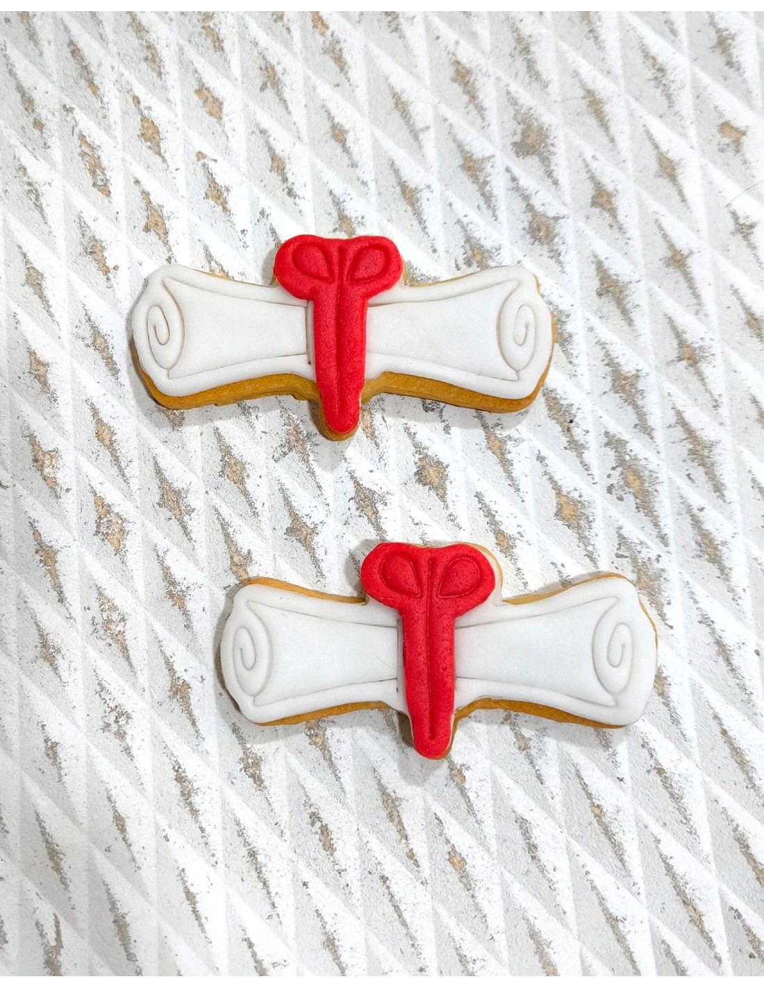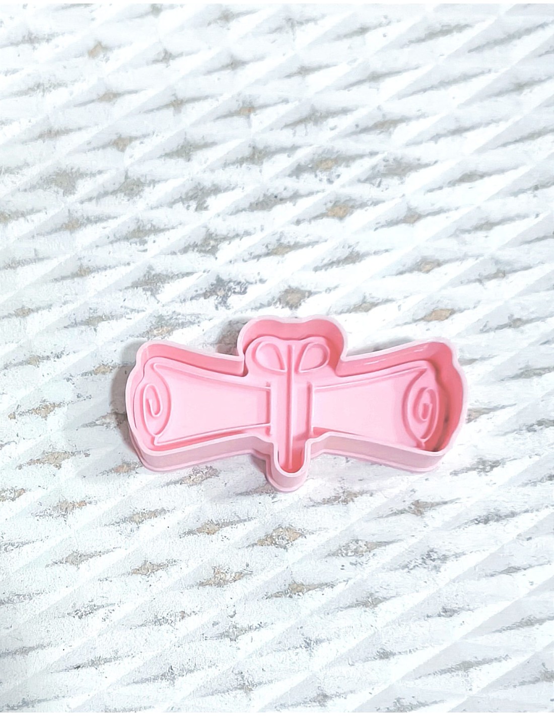 Cortador con forma de Diploma, muy fácil de utilizar y perfecto para cortar fondant y decorar galletas de graduación.