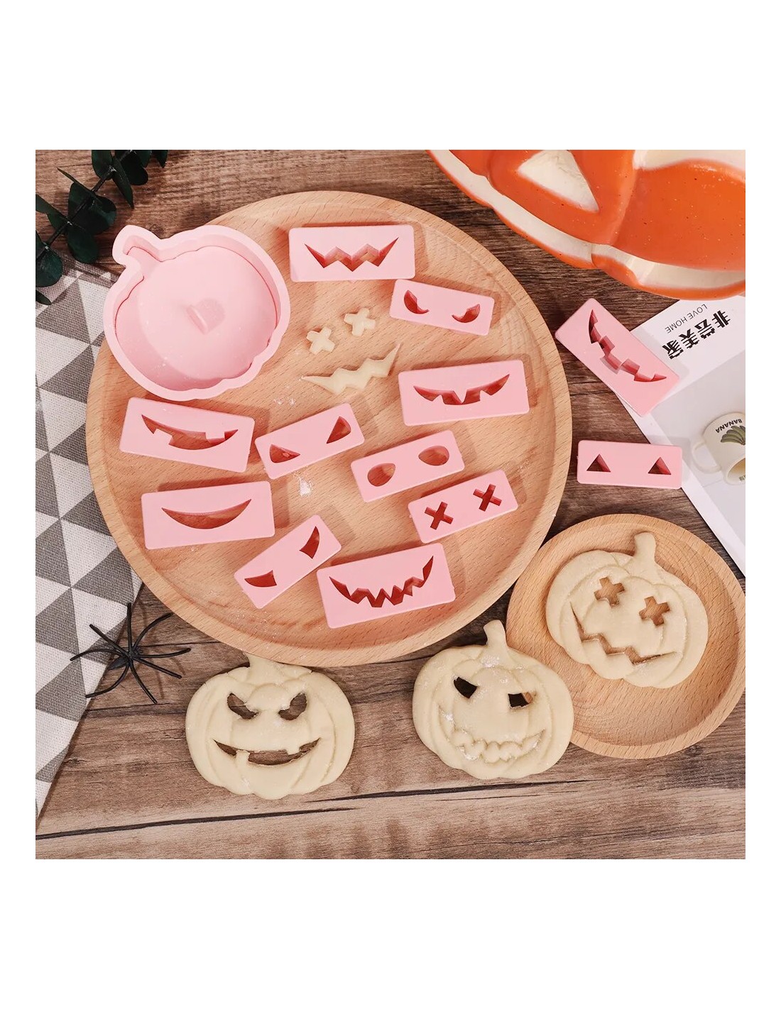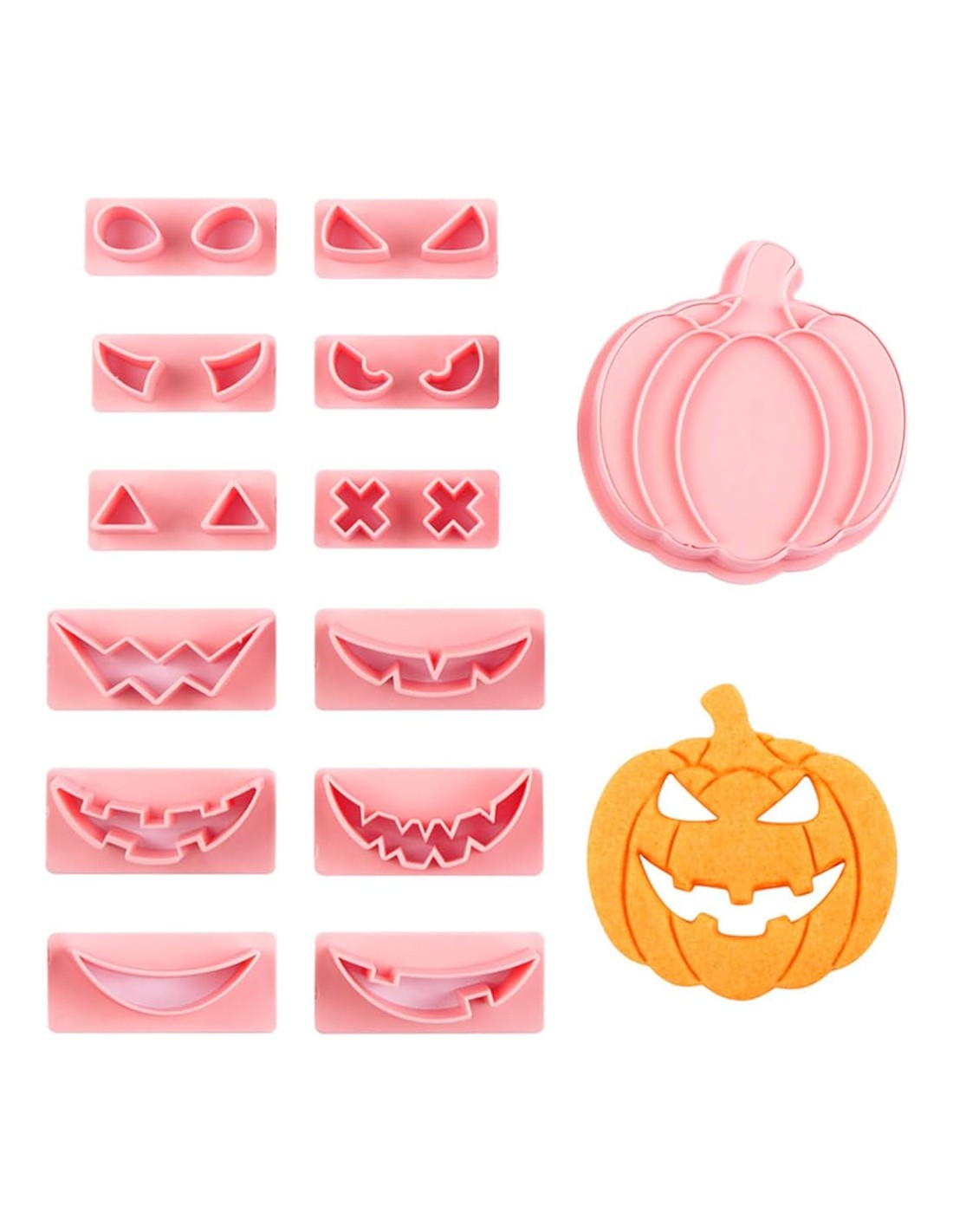 Cortador calabaza con marcadores de ojos y bocas para combinar como más te guste y hacer diferentes y terroríficas caras para galletas o fondant.