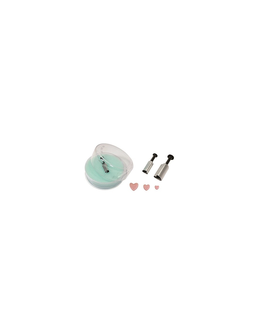 Set 3 mini cortadores con forma de corazón con expulsor, ideales para decorar tus galletas, tartas, cupcakes...