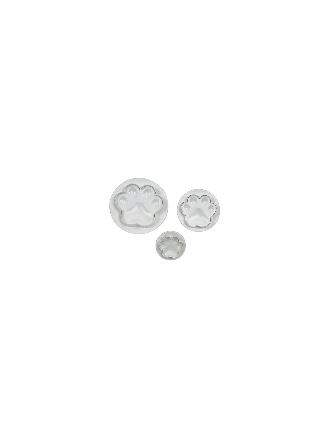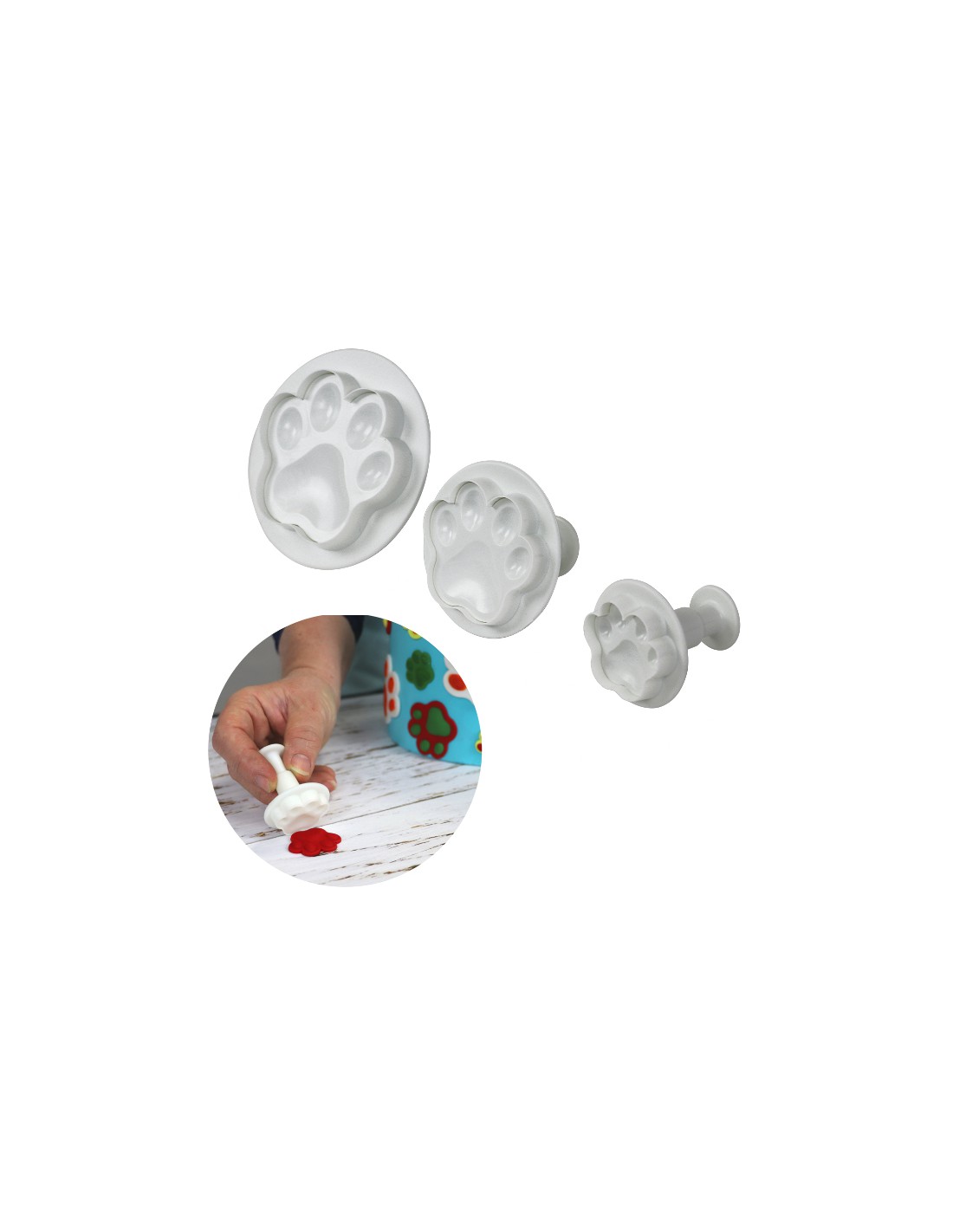Set 3 cortadores Huellas con expulsor, muy fáciles de utilizar y perfecto para cortar y marcar fondant.