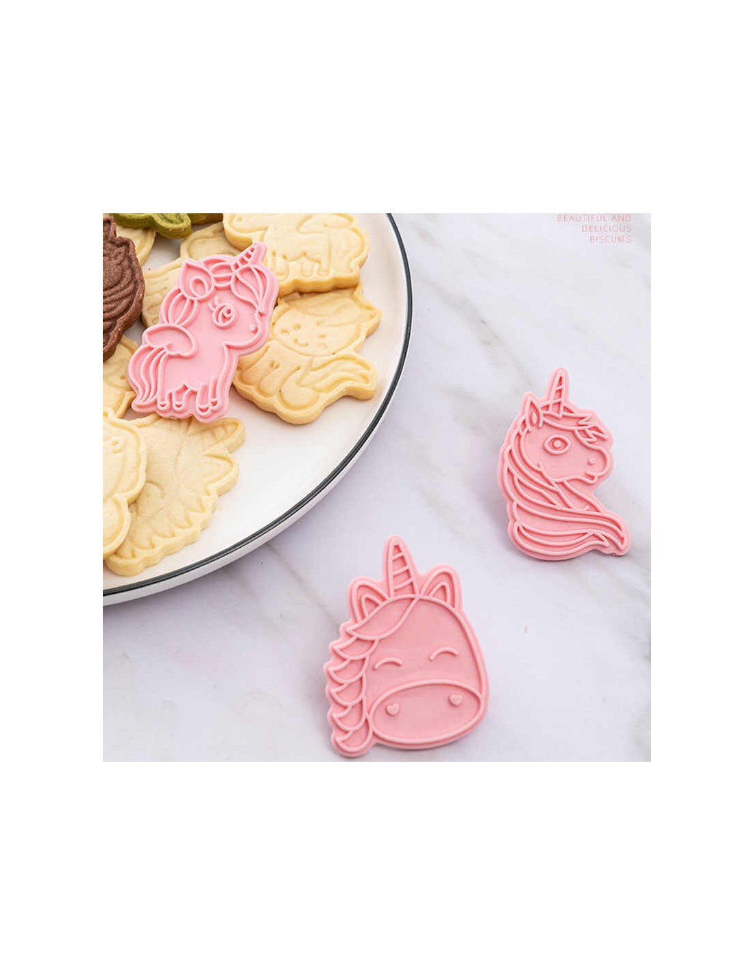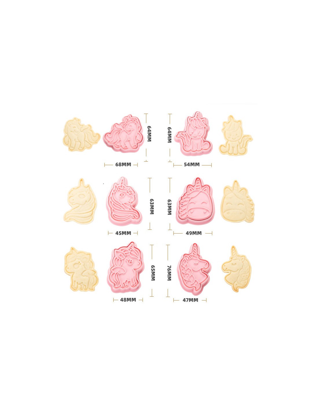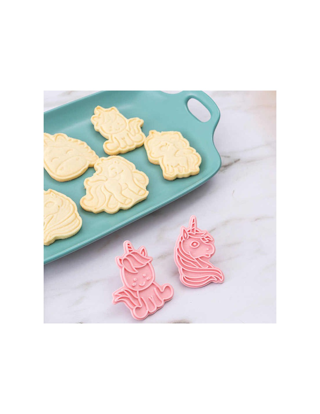 Set 6 cortadores + marcadores Unicornios, muy fáciles de utilizar y perfecto para cortar o marcar galletas o fondant.