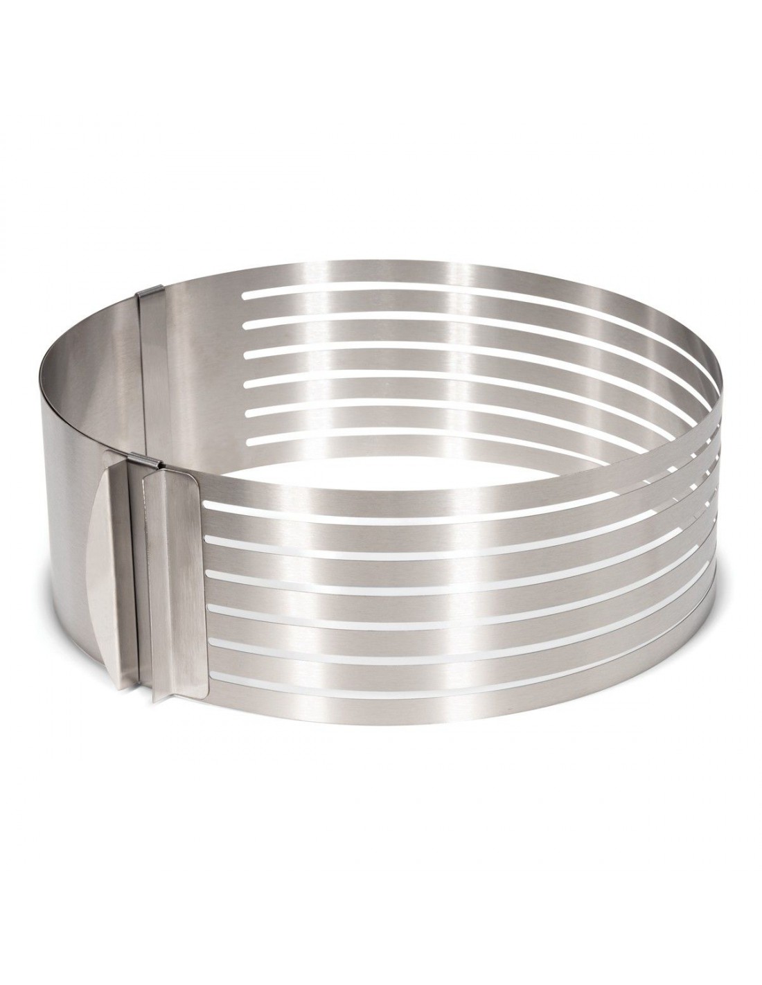 Cortador bizcocho capas ajustable en diámetro de 24 a 30 cm. Podrás cortar los bizcochos de manera perfecta con tu cuchillo preferido.