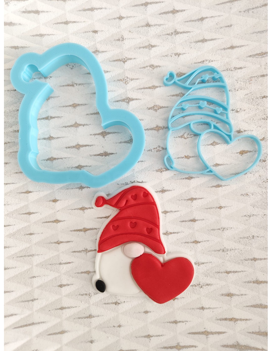 Cortador + marcador Gnomo con corazón, muy fácil de utilizar y perfecto para cortar o marcar galletas o fondant.