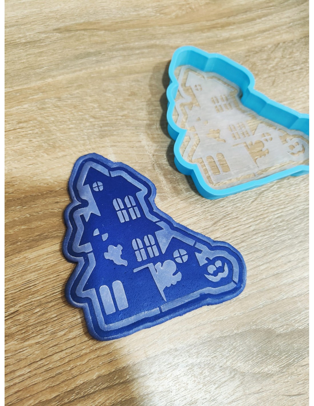 Cortador con forma de original Casa Encantada ideal para terrorificas galletas de Halloween.