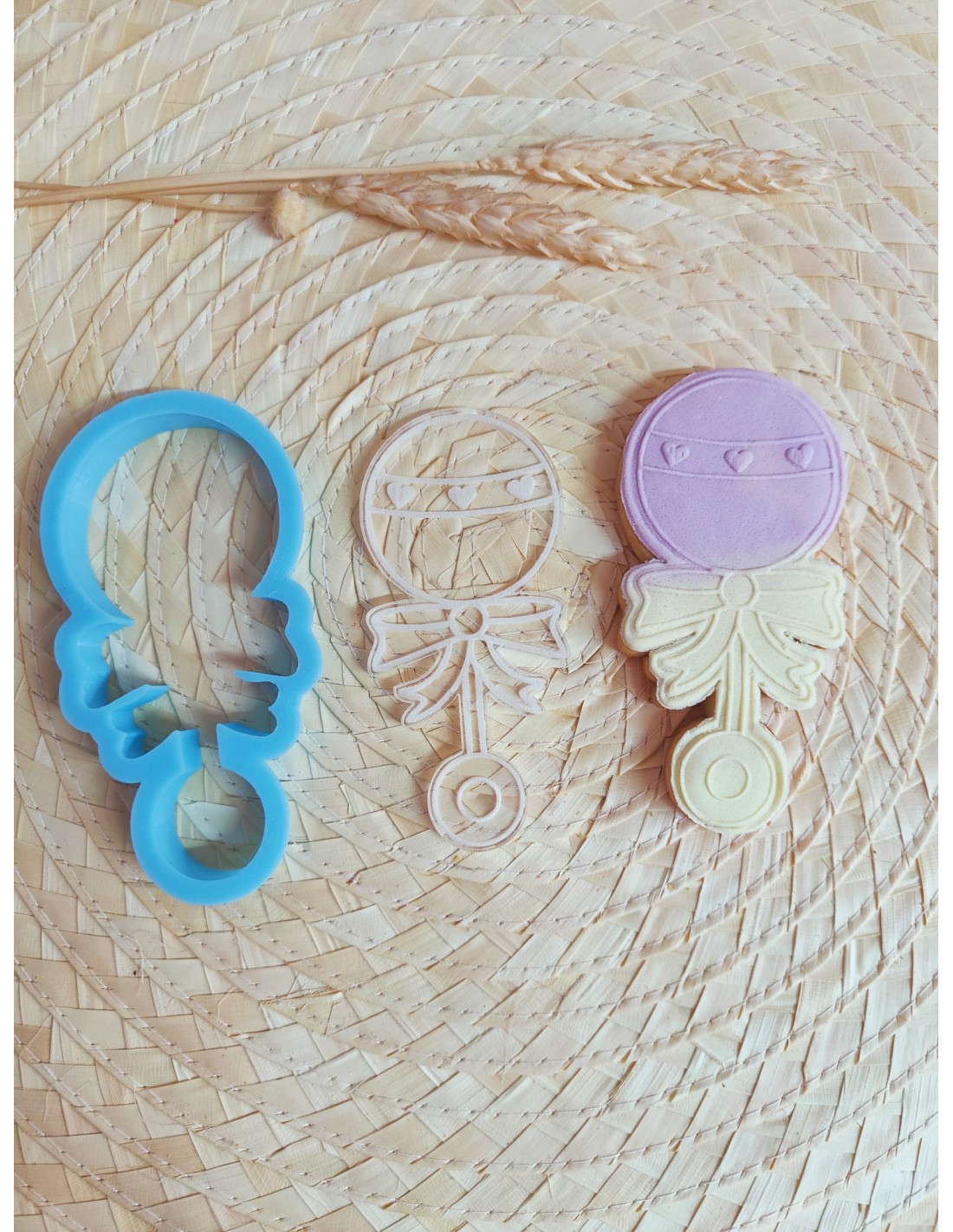 Cortador con forma de Sonajero + Sello ideal para cortar y marcar galletas o fondant.