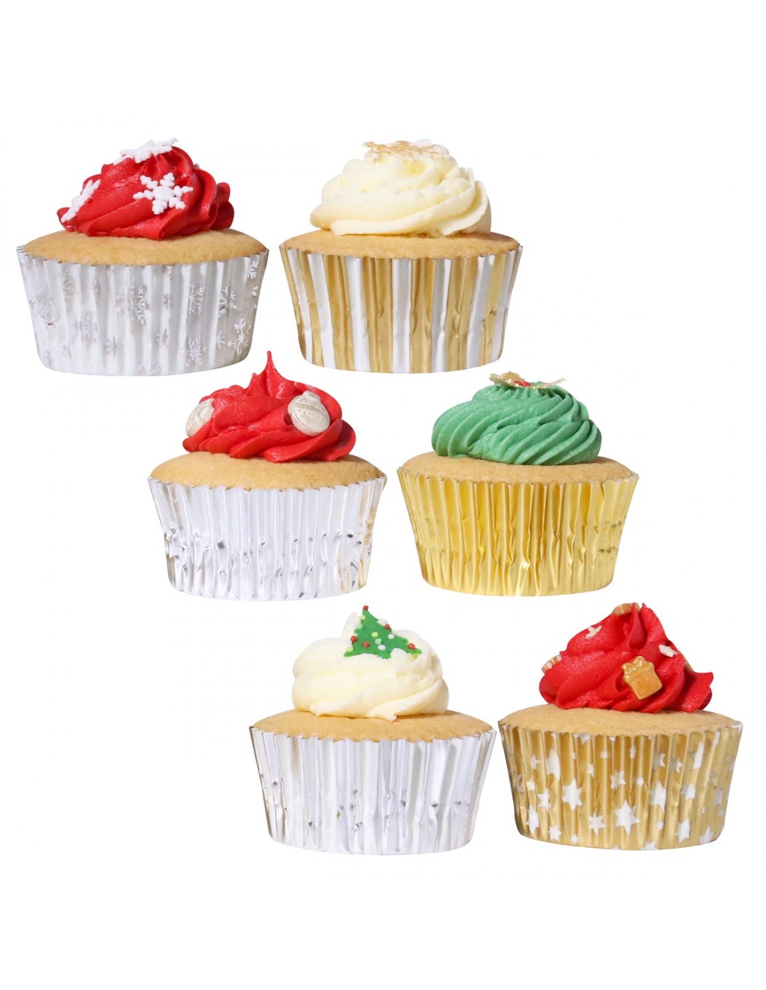 Envuelve tus cupcakes en alegría navideña con estos Cápsulas para Cupcakes con Forro de Aluminio de PME.