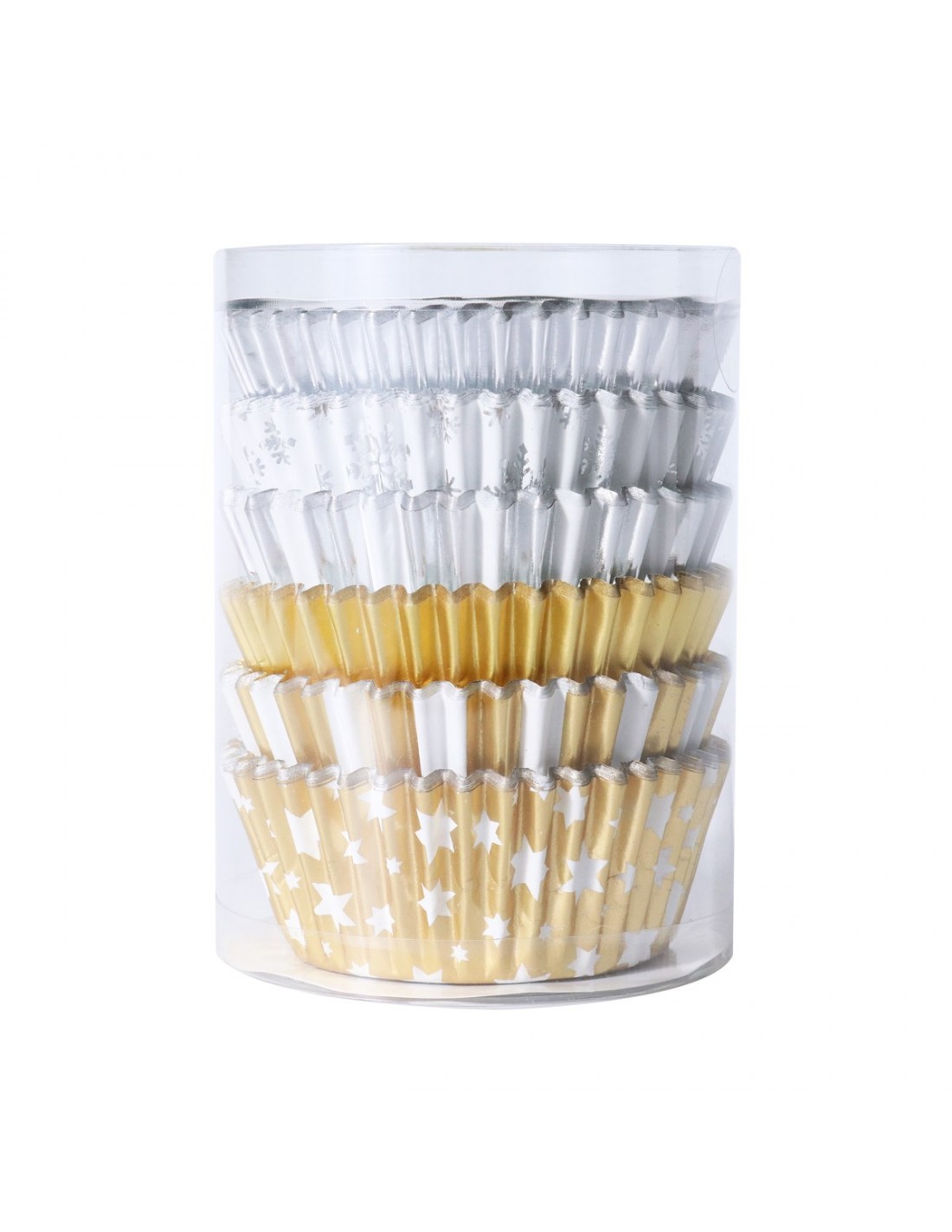 Paquete de 100 cápsulas. Incluye 6 diseños con patrones en Oro y Plata en colores clásicos de Navidad.