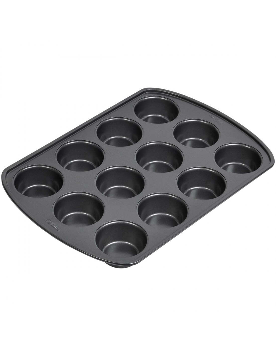 Molde para hornear 12 cupcakes de Wilton con superficie antiadherente. Este molde es más pesado y resistente que un molde normal facilitando una mejor distribución del calor y asegurando un horneado perfecto durante años.
