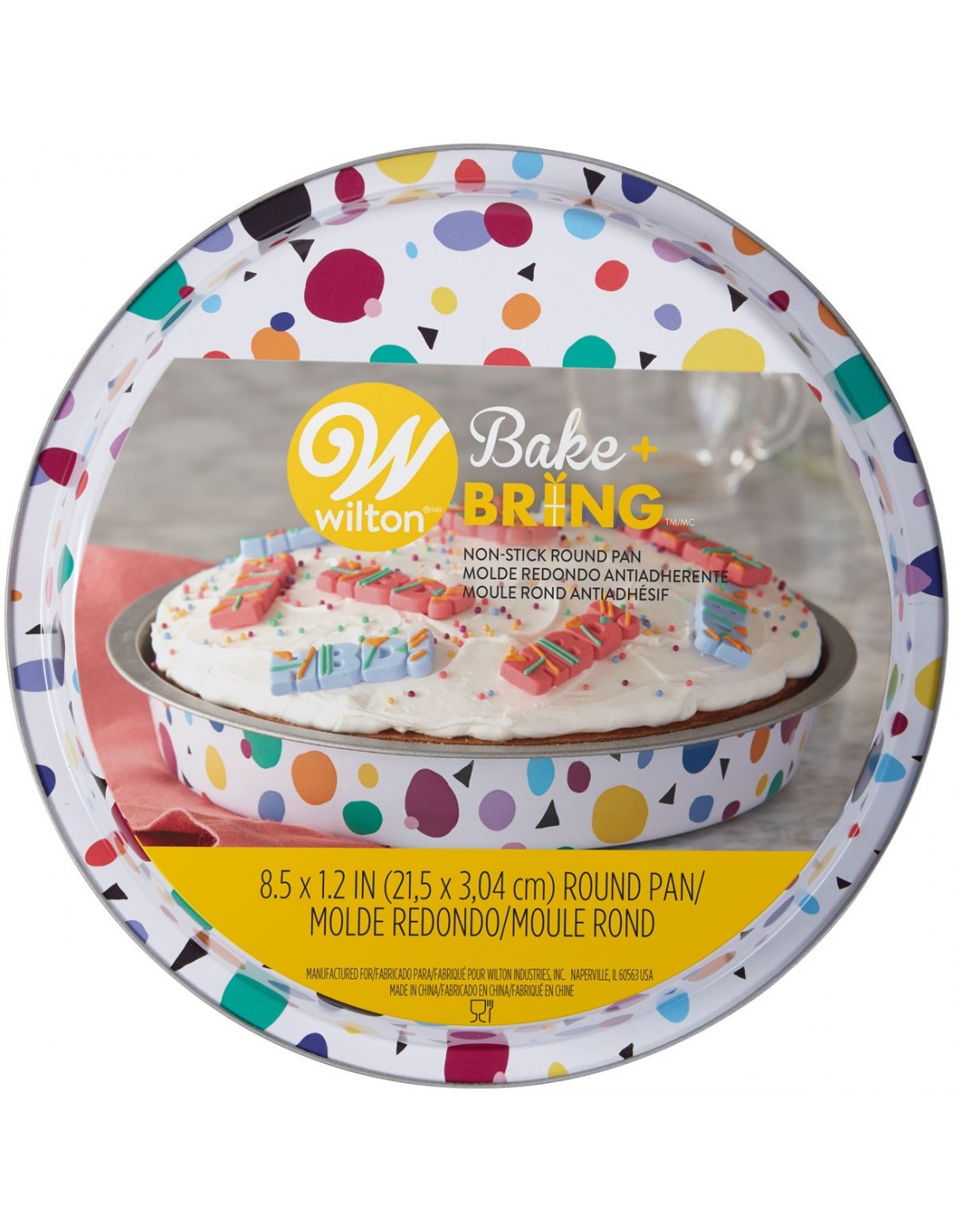 El molde semidesechable Redondo 20cm Wilton tiene un exterior de estaño con un diseño alegre y un interior con revestimiento antiadherente, para facilitar la limpieza y la liberación del bizcocho.