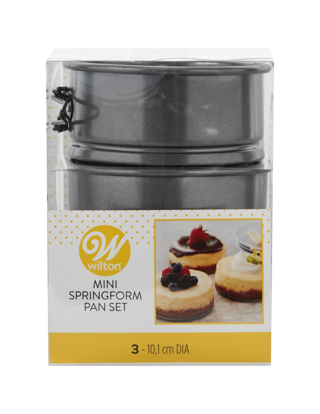 Este set de 3 mini moldes desmoldables de Wilton es genial para hacer tartas individuales, cheesecakes, pasteles, bizcochos... Ideal para pequeños postres.