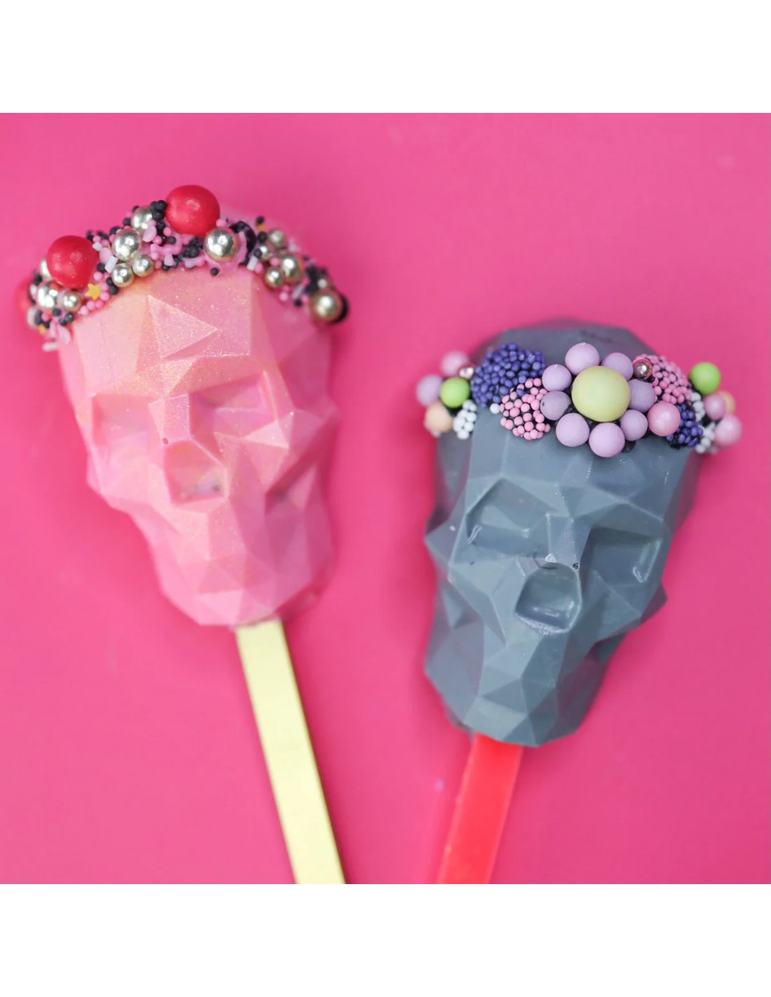 Con el molde para piruletas de Calaveras podrás hacer originales piruletas de chocolate o caramelo para comer directamente o decorar tus tartas.