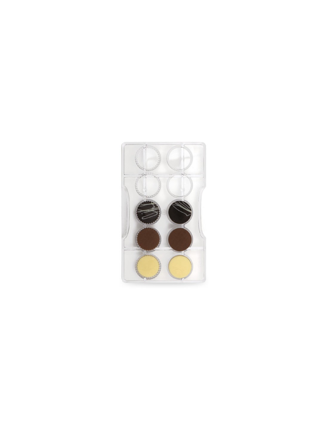 Este molde para chocolate de policarbonato con forma de círculos lisos y ondulados es un molde que te permitirá realizar bonitos chocolates de una manera muy sencilla.