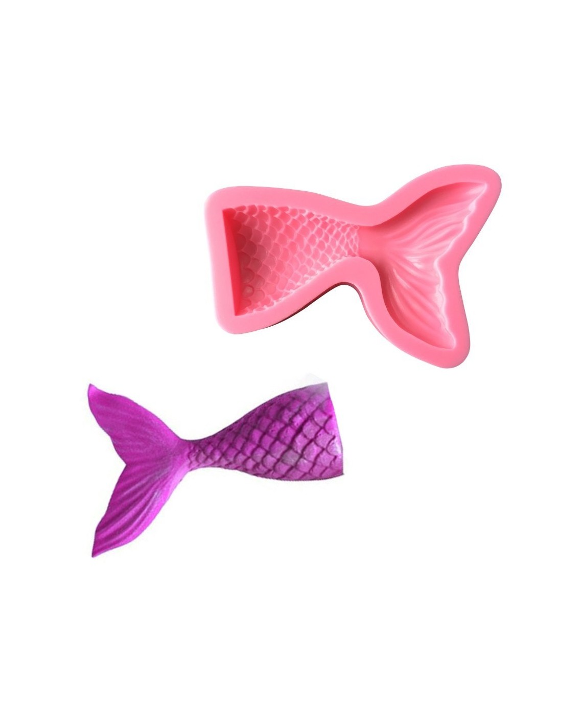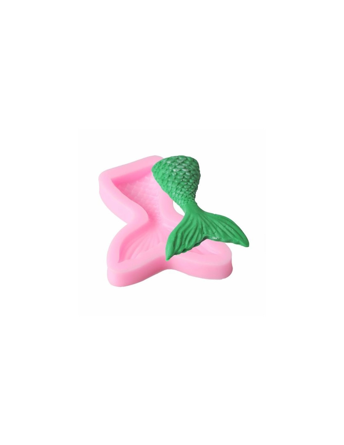 Molde de silicona con forma de cola sirena.