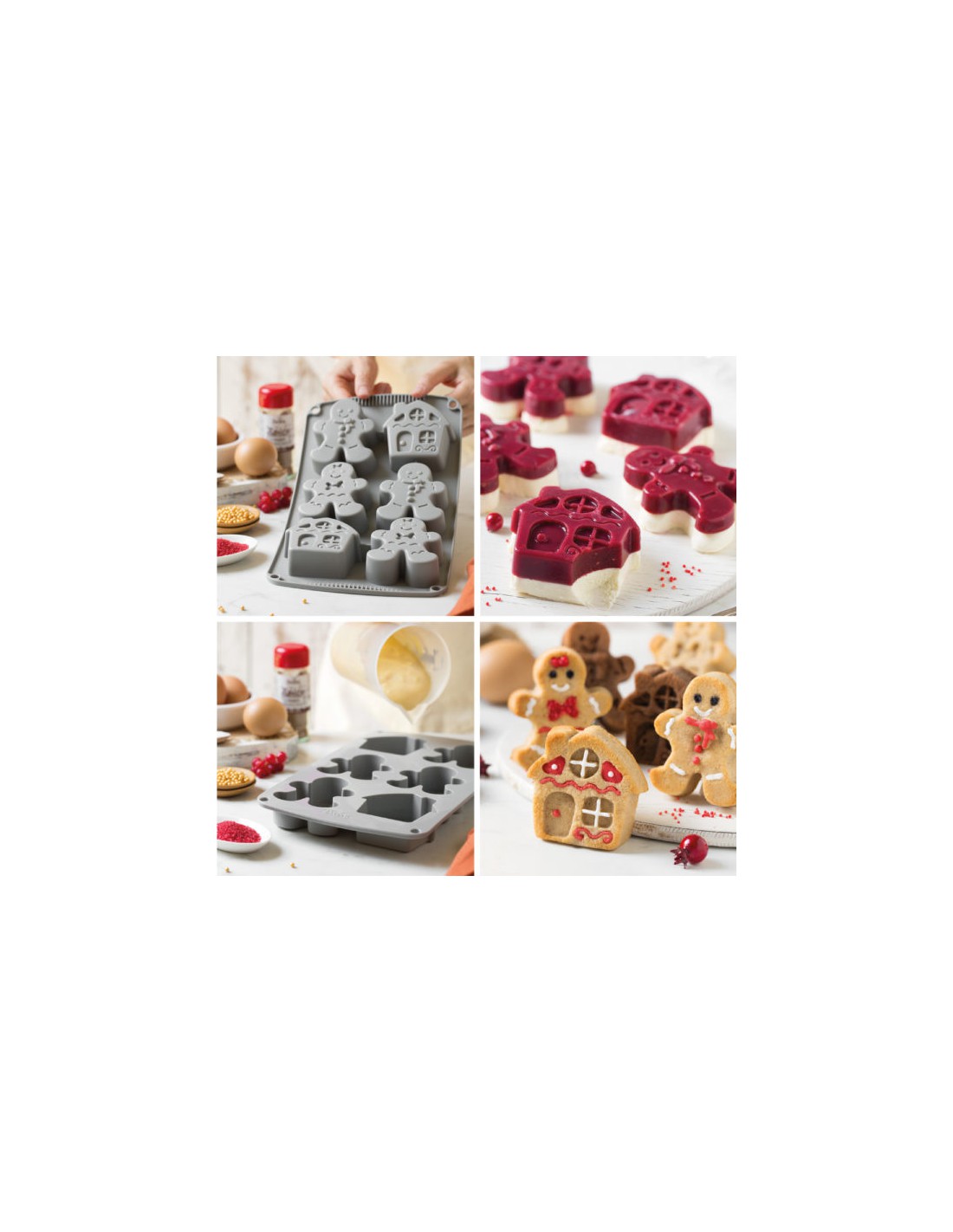 Contiene 6 cavidades con forma de muñecos de jengibre variadas.
