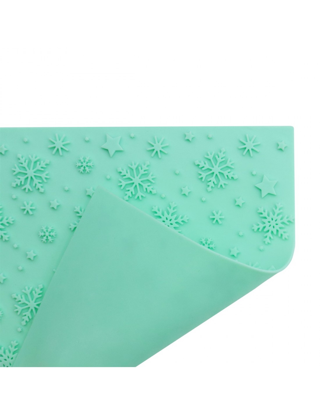 Contiene un tapete en relieve de silicona con diseño de copos de nieve.