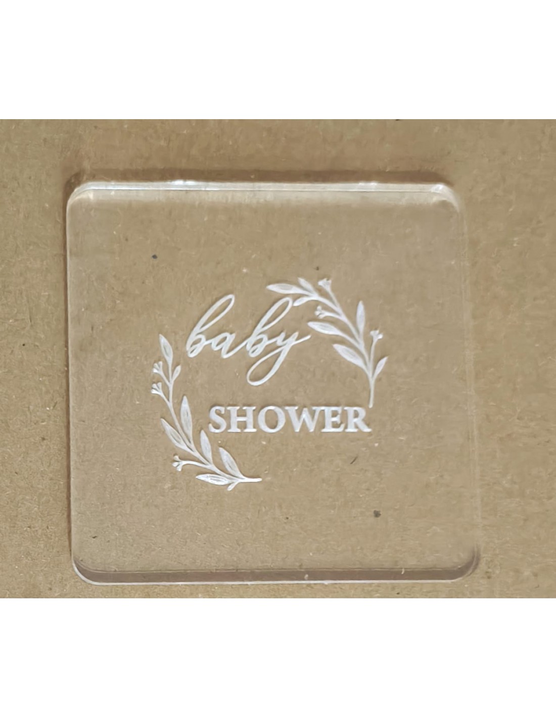 Sello para galletas con mensaje ideal para Baby Shower con un bonito diseño floral. Está fabricado en metacrilato transparente apto para alimentación.